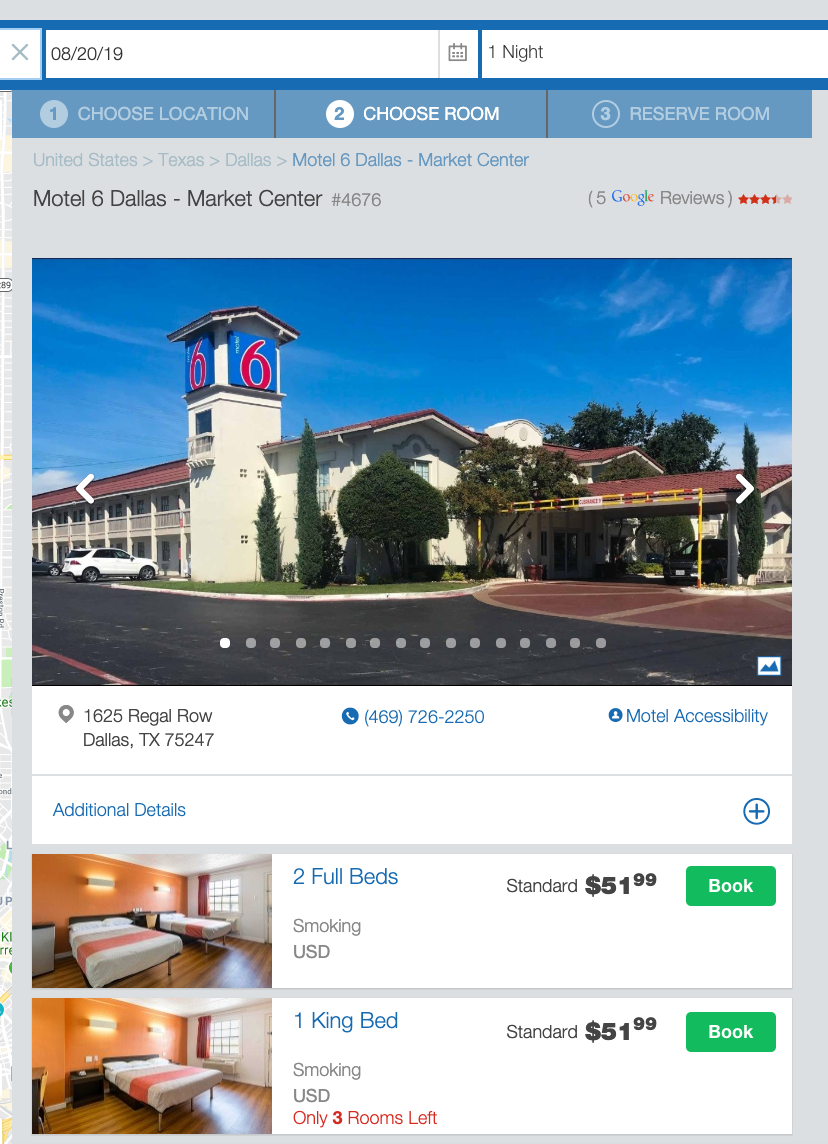 With that in mind, we looked at prices for three different two-star hotels all located near Dallas Love Field Airport: Oyo Hotel Dallas Love Field, Motel 6 Dallas Market Center and Sleep Inn Dallas Love Field–Medical District. First, we compared prices for a same-day, one-night booking and then for a one-night booking one month in advance. We checked prices on a regular basis throughout the day on Aug. 20 from 11am to 9pm and here’s what we found: