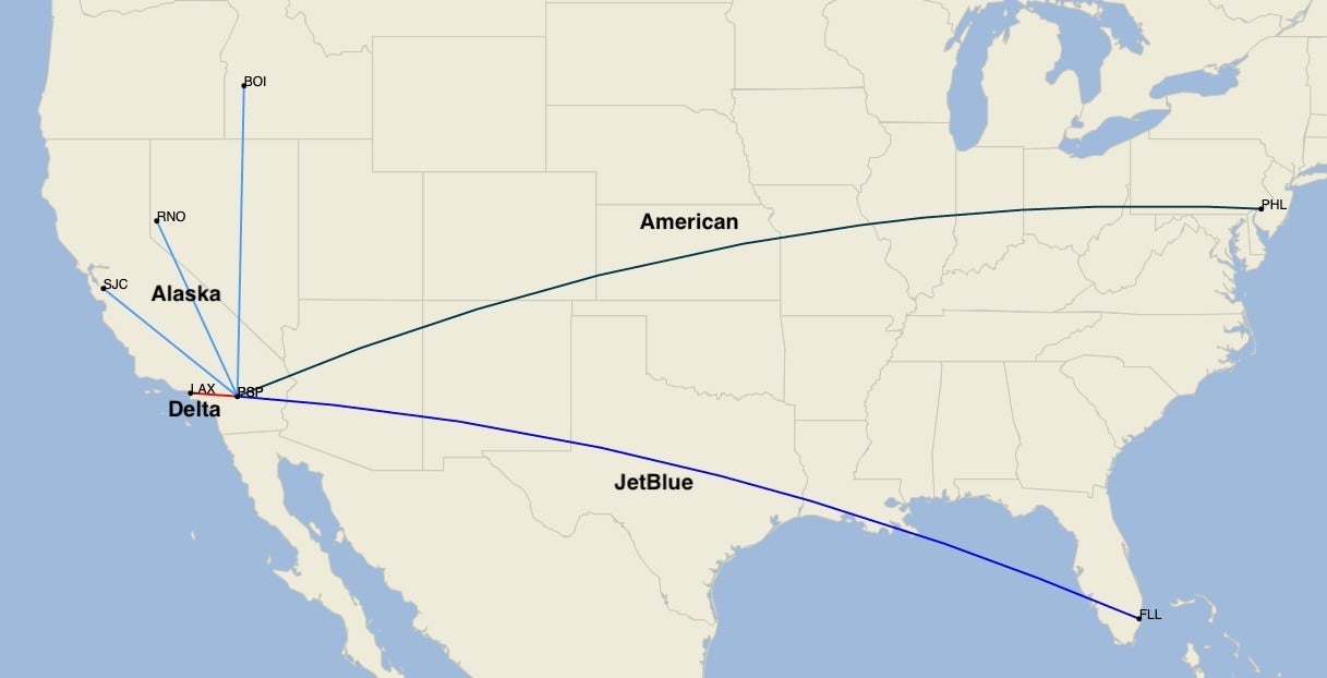 Alaska Airlines, American Airlines, Delta Air Lines, JetBlue Airways and Southwest Airlines have all unveiled new flights to Palm Springs International Airport (PSP) in past months. Of the five carriers, the first four already serve the airport while it will be an entirely new dot for Dallas-based Southwest.