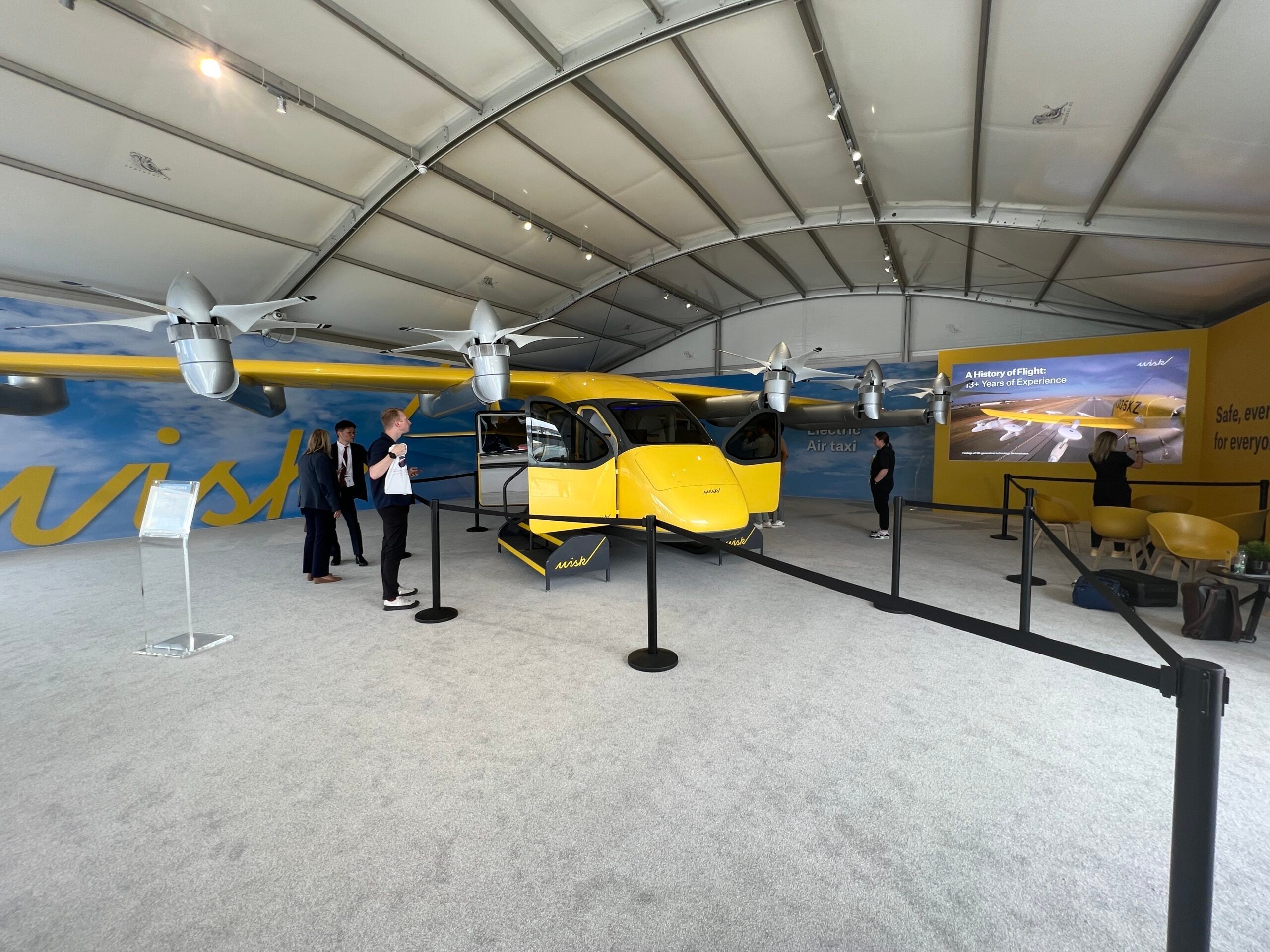 Over behind Boeing's main setup, Wisk Aero, an autonomous eVTOL (electric vertical take-off and landing) firm, had a full mockup of its planned introductory aircraft. Wisk, which was founded in 2019 as an evolution of a project that began in 2010, is owned by Boeing and viewed as one of the primary competitors in the emerging eVTOL space.