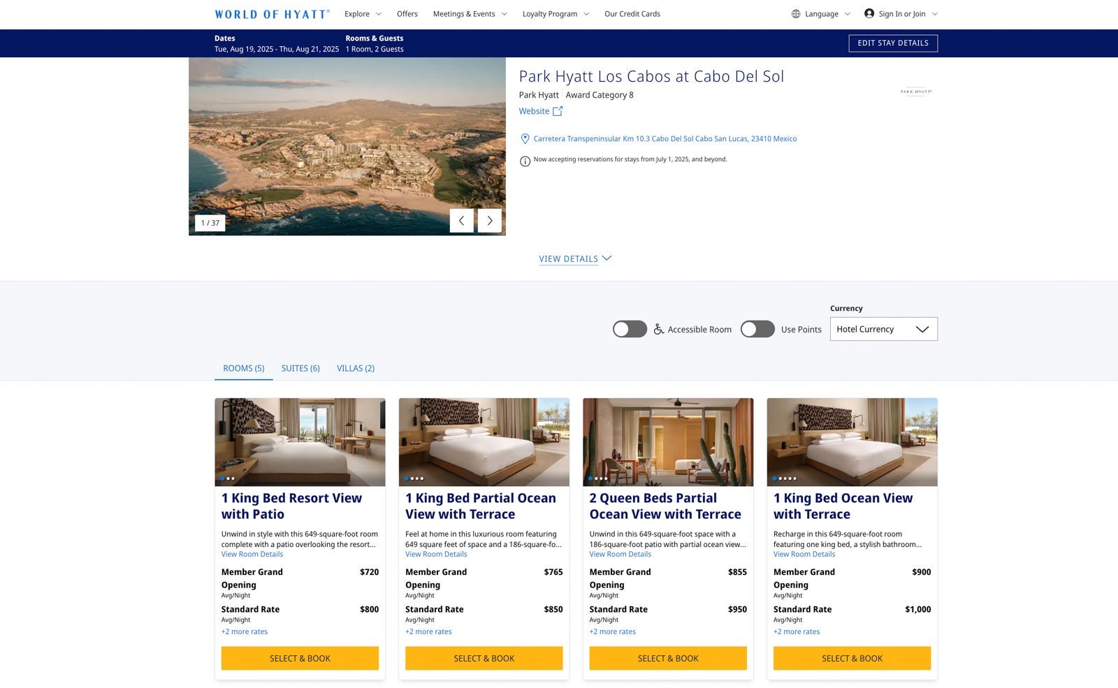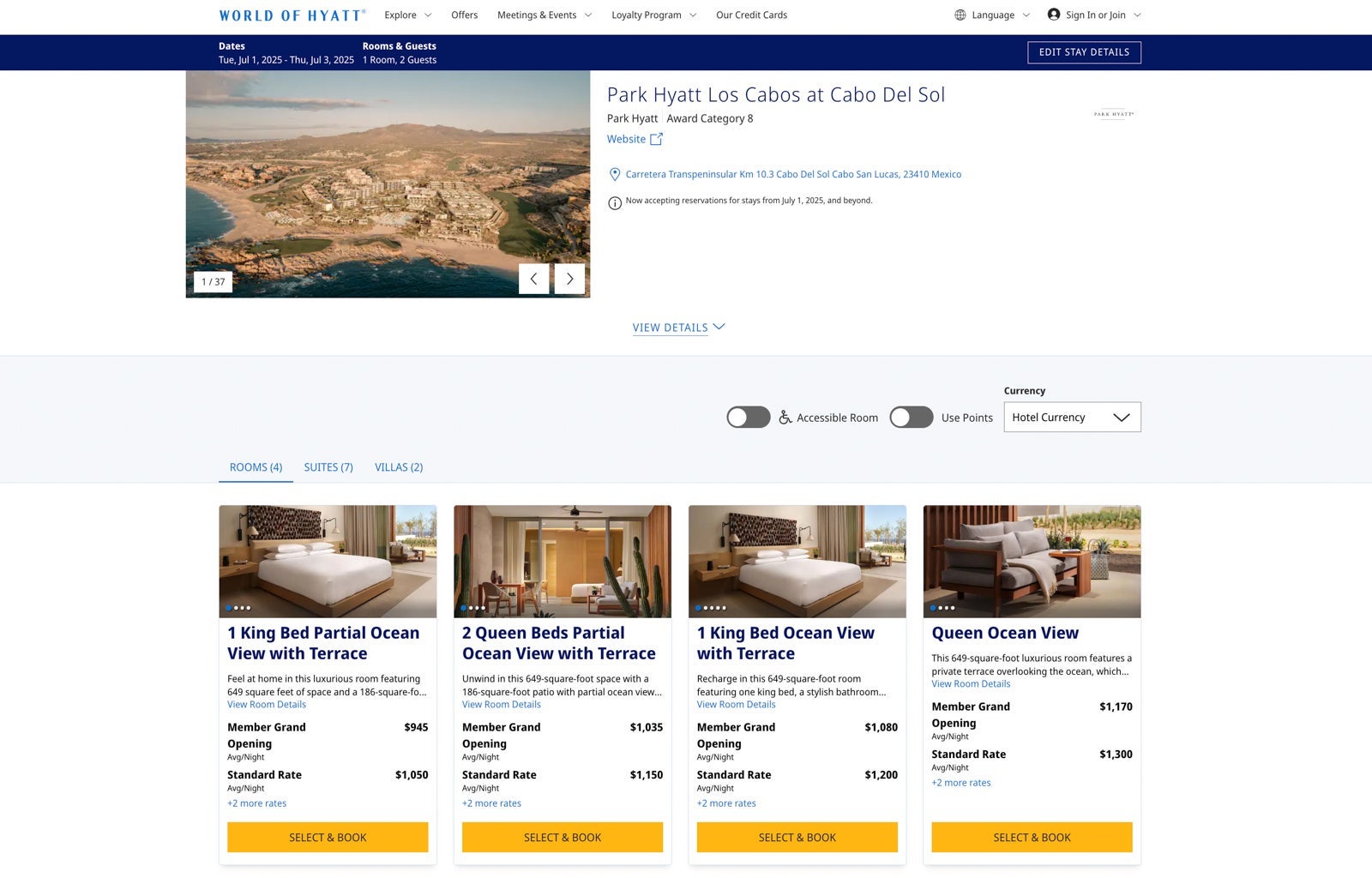 Rates at the Park Hyatt Los Cabos at Cabo del Sol