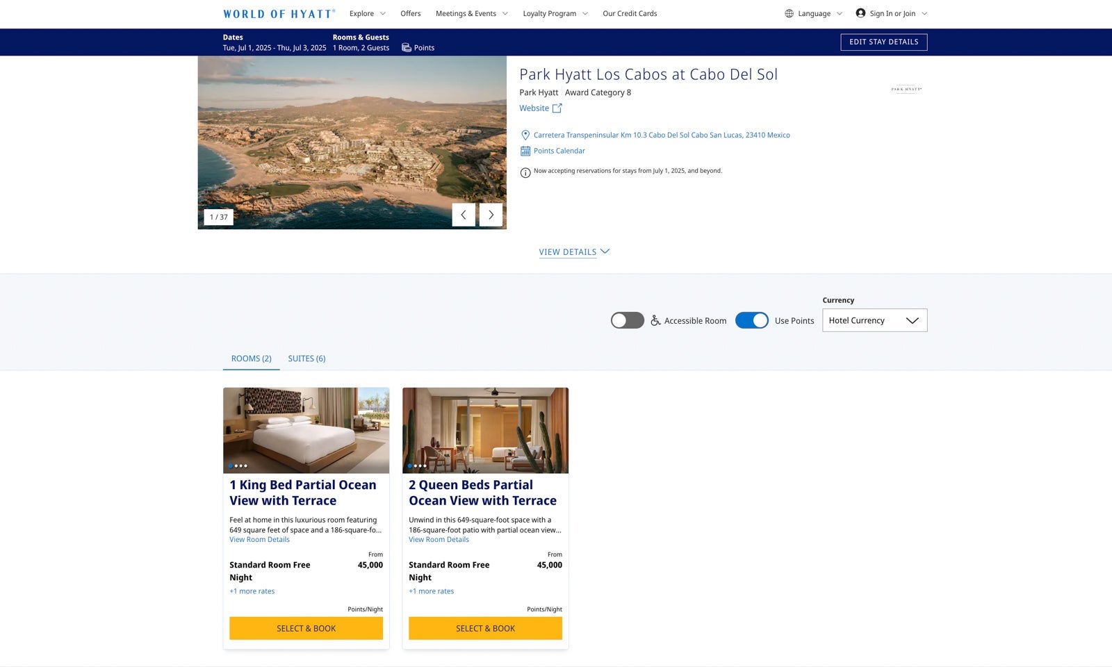 We're seeing points rates ranging from 40,000 to 45,000 points per night.