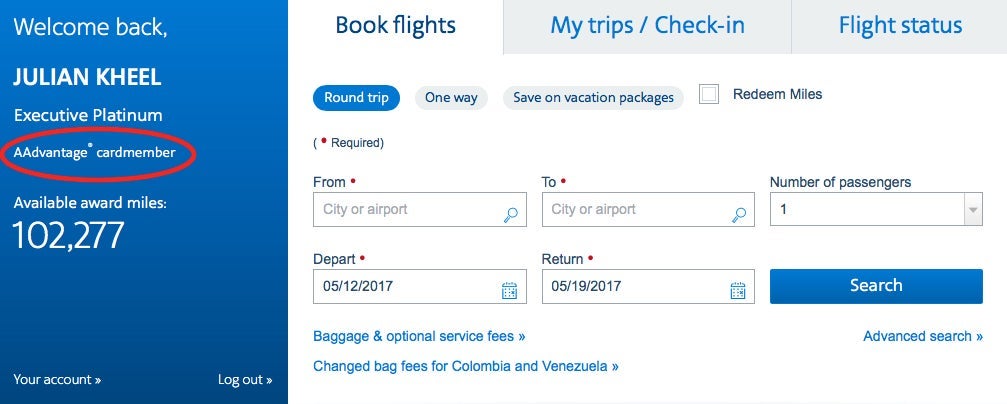 Note that if you just recently applied and got approved for the card, it does take a little while for the benefit to be applied to your account the first time. Both Citibank and Barclaycard applications state you can expect to wait up to 7 days for everything to go through. Once your card is linked, you can confirm it by signing into your American AAdvantage account and looking for the words in the blue box on the home page.