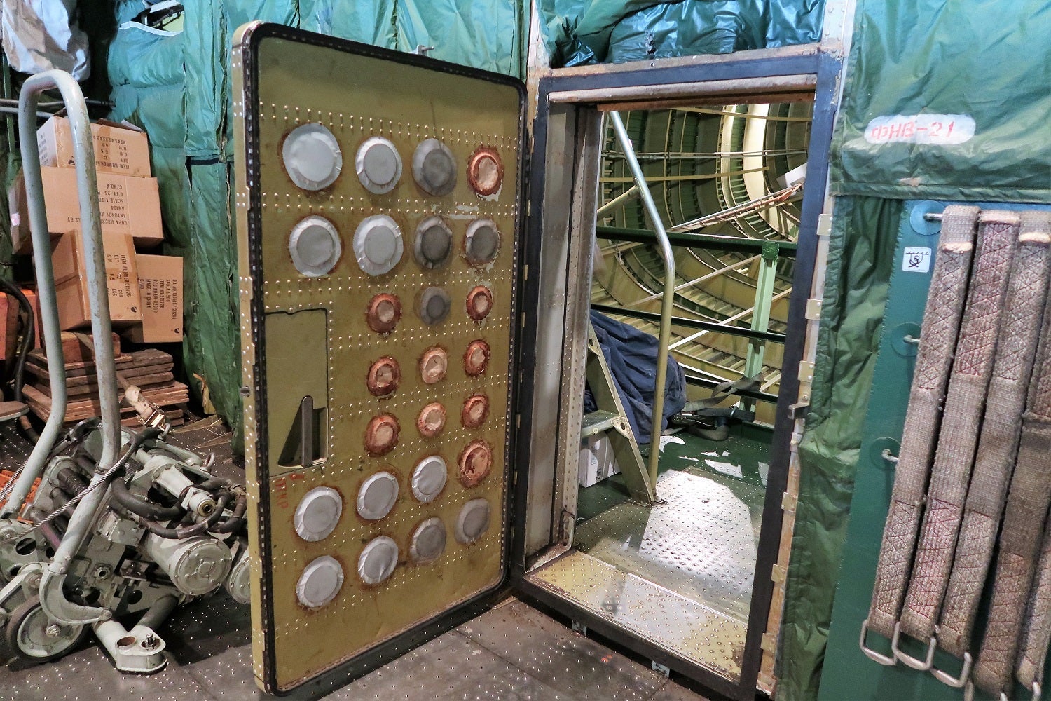 In order to load cargo, the massive nose opens upward and a tongue-like cargo loading ramp unfurls. Here's that 7+-minute process sped up and in reverse: