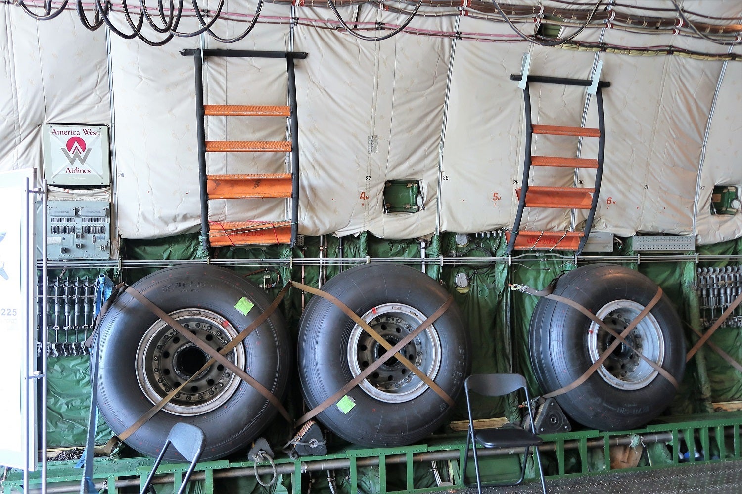 And, with that many wheels and being the only aircraft of its type, Antonov Airlines makes sure to carry spare wheels. During its visit to ILA Berlin, it had five spares on board.