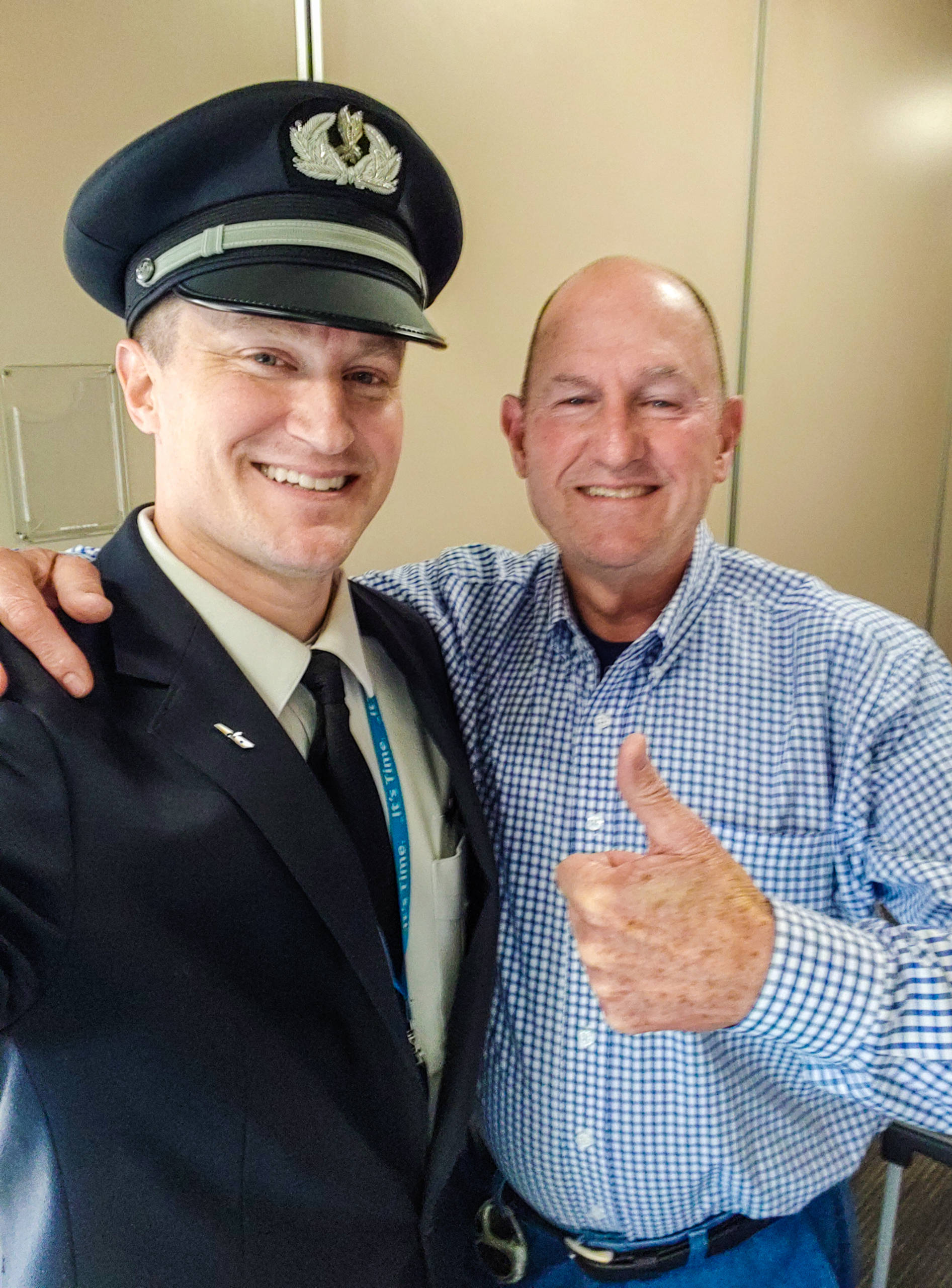 Michael, who was serving as the first officer on board that day, had the full support of his captain, who took it upon himself to conduct the walk-around for the flight and communicate with the gate agents to help Lowe stay hidden. The captain also asked a traveling employee with a reserved seat if she would be willing to take a jump seat in order to accommodate Bob on the flight. The off-duty flight attendant graciously agreed, and both pilots gave up their company meals in order to offer one to her as a thank-you.