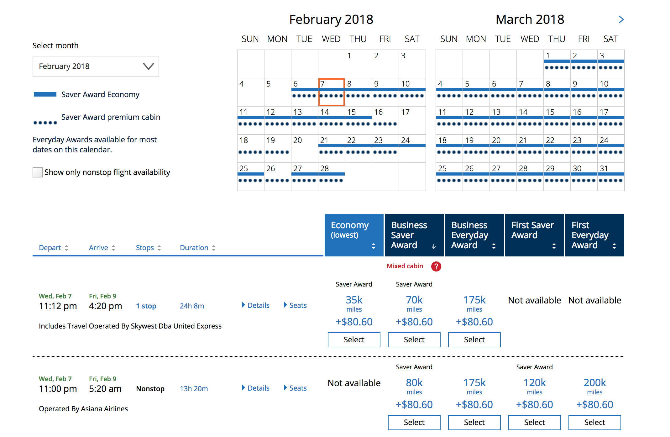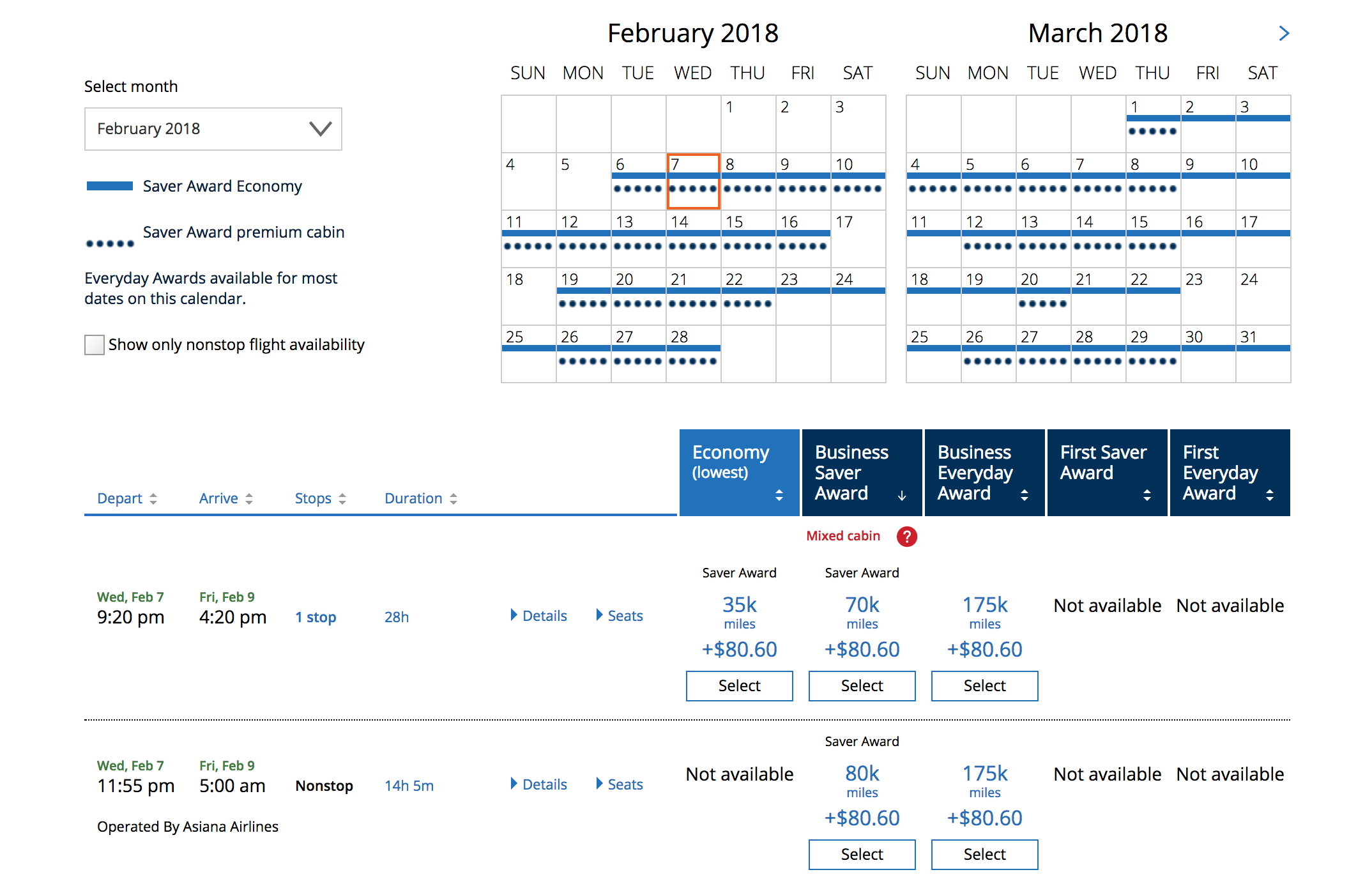 West Coast-based flyers — particularly those in Los Angeles (LAX) — have plenty of saver options. Almost every day of the month of February, there's saver availability for both economy and premium travel.