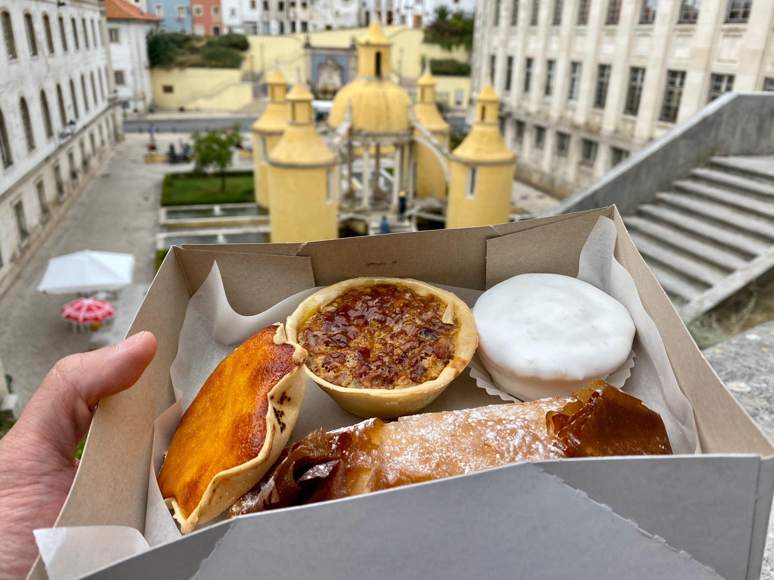 Having Portuguese pastries in Coimbra. (Photo by Chris Dong/The Points Guy.)