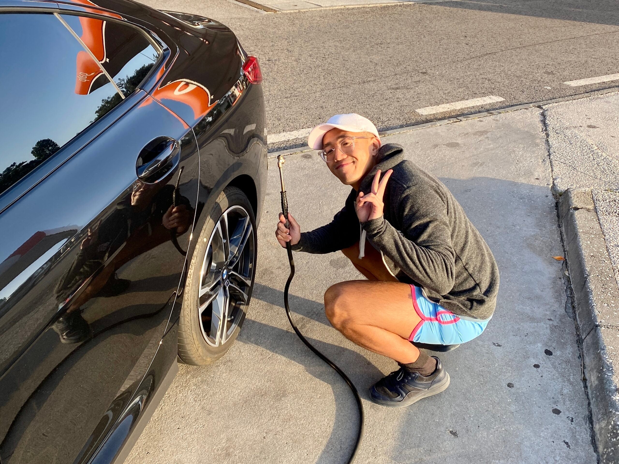 Not only was the air pump for the tire free, but the directions to do so were also clearly given in both Portuguese and English. That's a lifesaver for city dwellers like me who are, admittedly, uninformed about the world of cars.