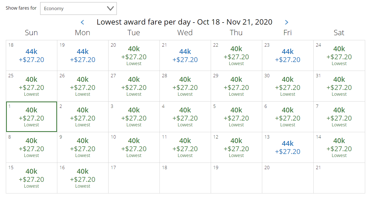 While this is the award calendar for Oct./Nov.2020, the redemption rates remain the same through Apr. 2021.