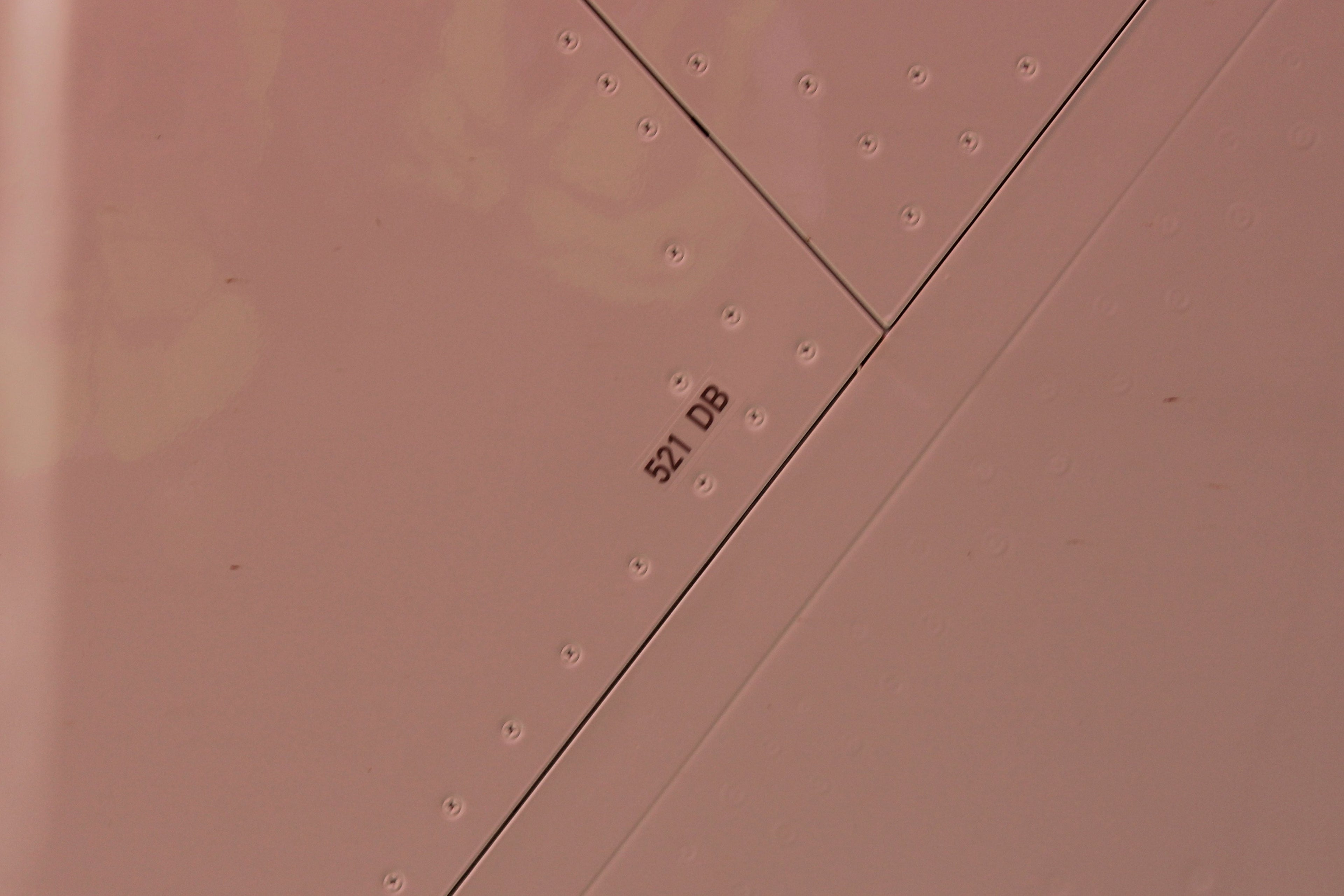We started underneath the port side wing, where Wayman pointed up at letters on a panel. "If I can read those letters—521 DB— I know there's no icing issue on the underside of the wing," he said, explaining that this "letter" check is written in the aircraft manual. Aircraft sometimes arrive with some thin ice on the wings or develop frost from the cold fuel in the tanks.