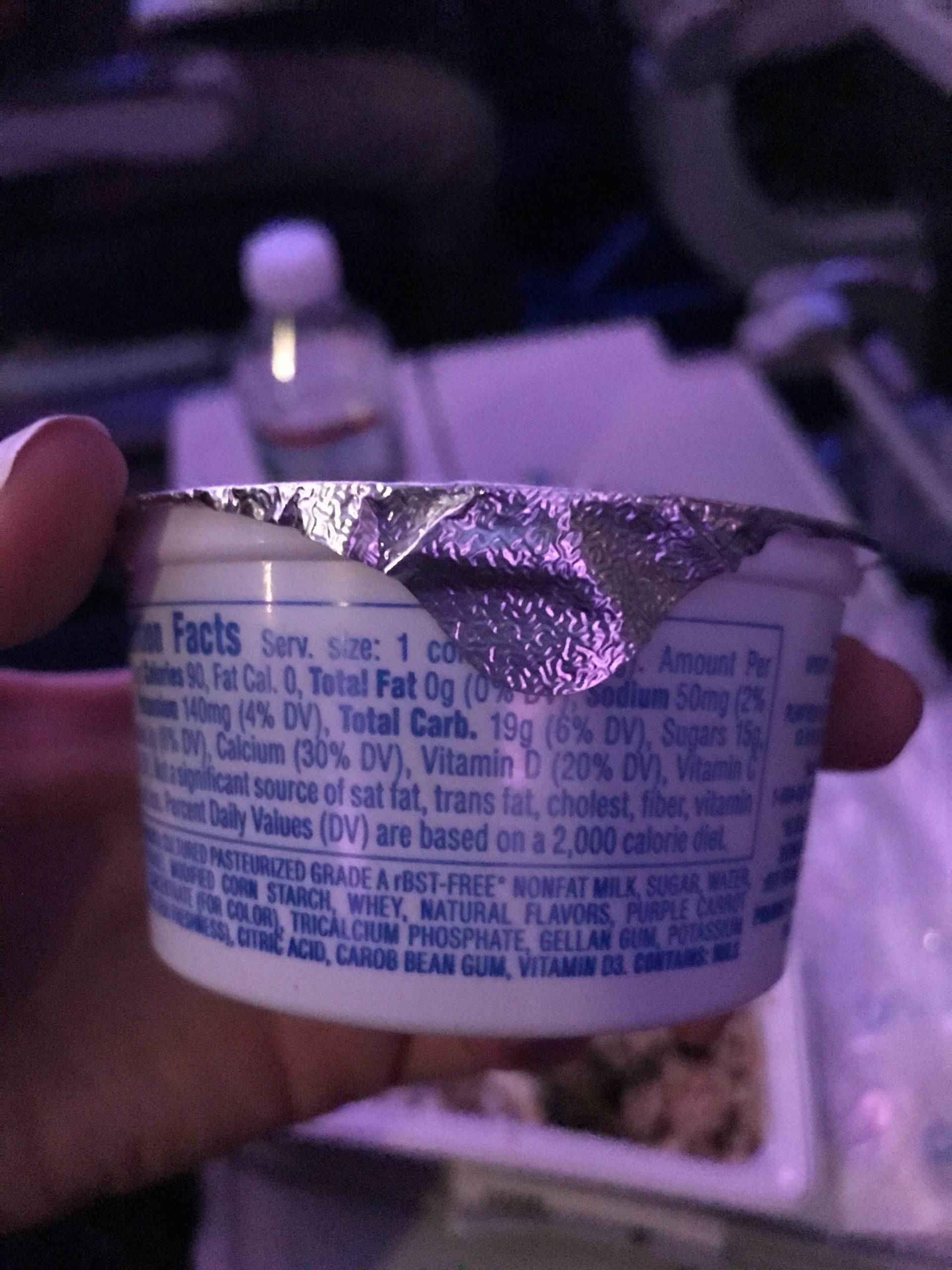 According to registered dietician Jackie Arnett Elnahar, the recommended sugar intake for adult women is 22 grams of sugar per day and 36 grams daily for adult men. The yogurt alone was more than half of the recommended intake and that's not including the fruit she was served.