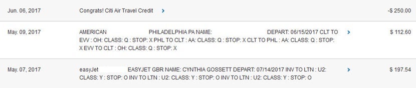 Because we had booked flights in and out of London, we needed to get back to London to catch our return flight home. We booked inexpensive tickets on EasyJet and I used my Citi Prestige card again for the charge. Since the Citi Prestige card comes with a $250 airfare credit, all of the airfare was refunded (note that I got the full $250 at one time because I'd bought a flight for my dad in the same billing cycle).