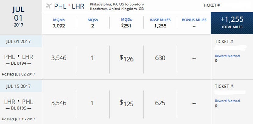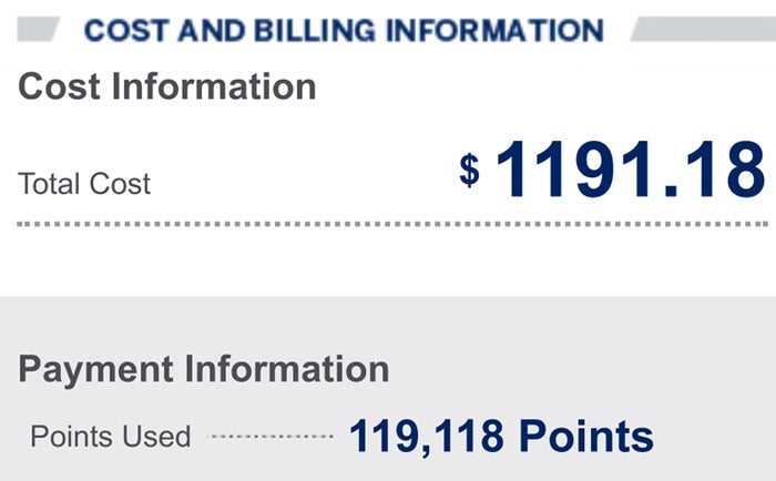 I used 119,118 points for the three Delta flights that cost $1,191.18 total.