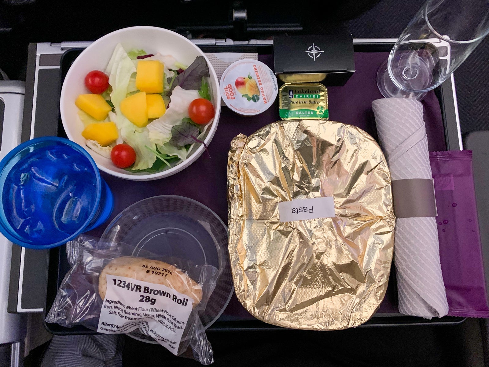 On my flight, the flight attendants working the premium economy cabin didn't serve predeparture beverages, even though it's recommended in the service protocol. Throughout the meal service, Premium Plus passengers were served from the same carts as the economy cabin, with flight attendants loudly asking across the aisle if you wanted chicken or pasta.