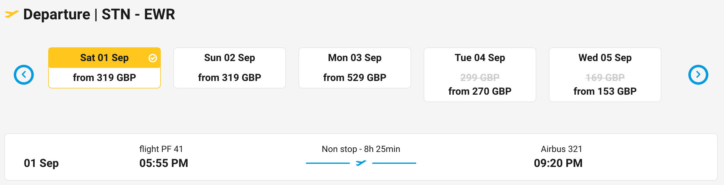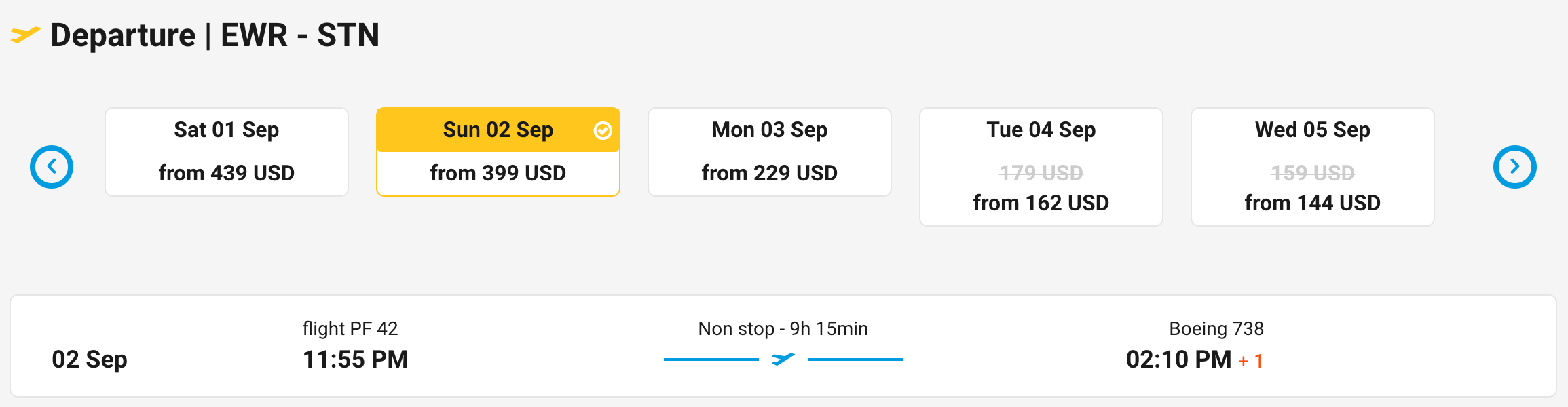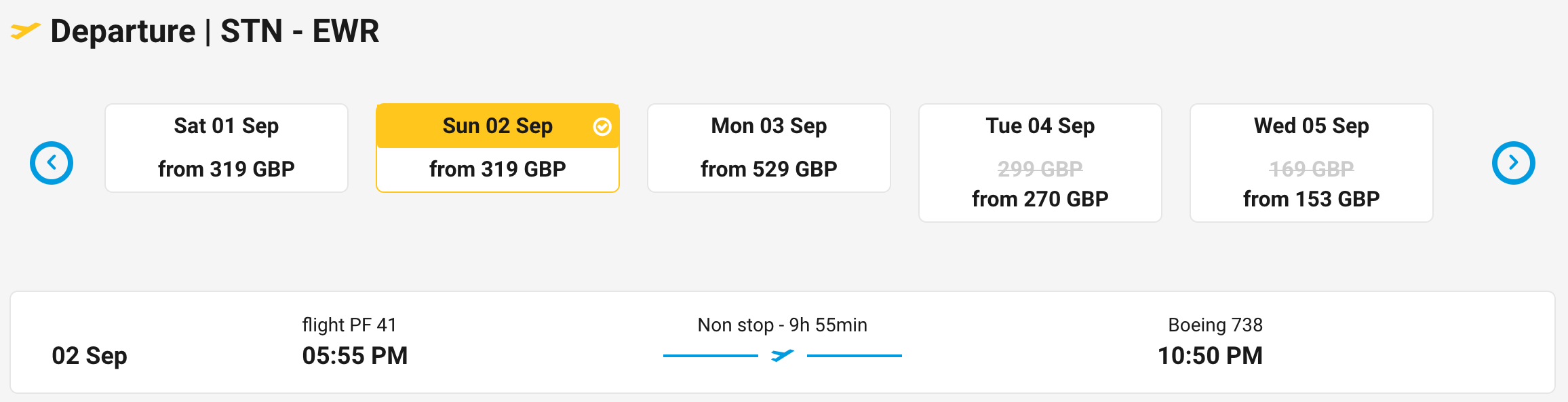 Primera Air has five Airbus A321neos in its fleet, with a couple more long-range models on the way. But the airline also has a handful of Boeing 737s, used primarily for flights within Europe. These planes aren't intended to fly across the Atlantic — in fact, with a range of roughly 3,500 miles, they really can't, without seriously compromising capacity and fuel reserves. So it's a bit surprising to see a Boeing 737-800 listed for several upcoming Newark (EWR)-London (STN) flights.