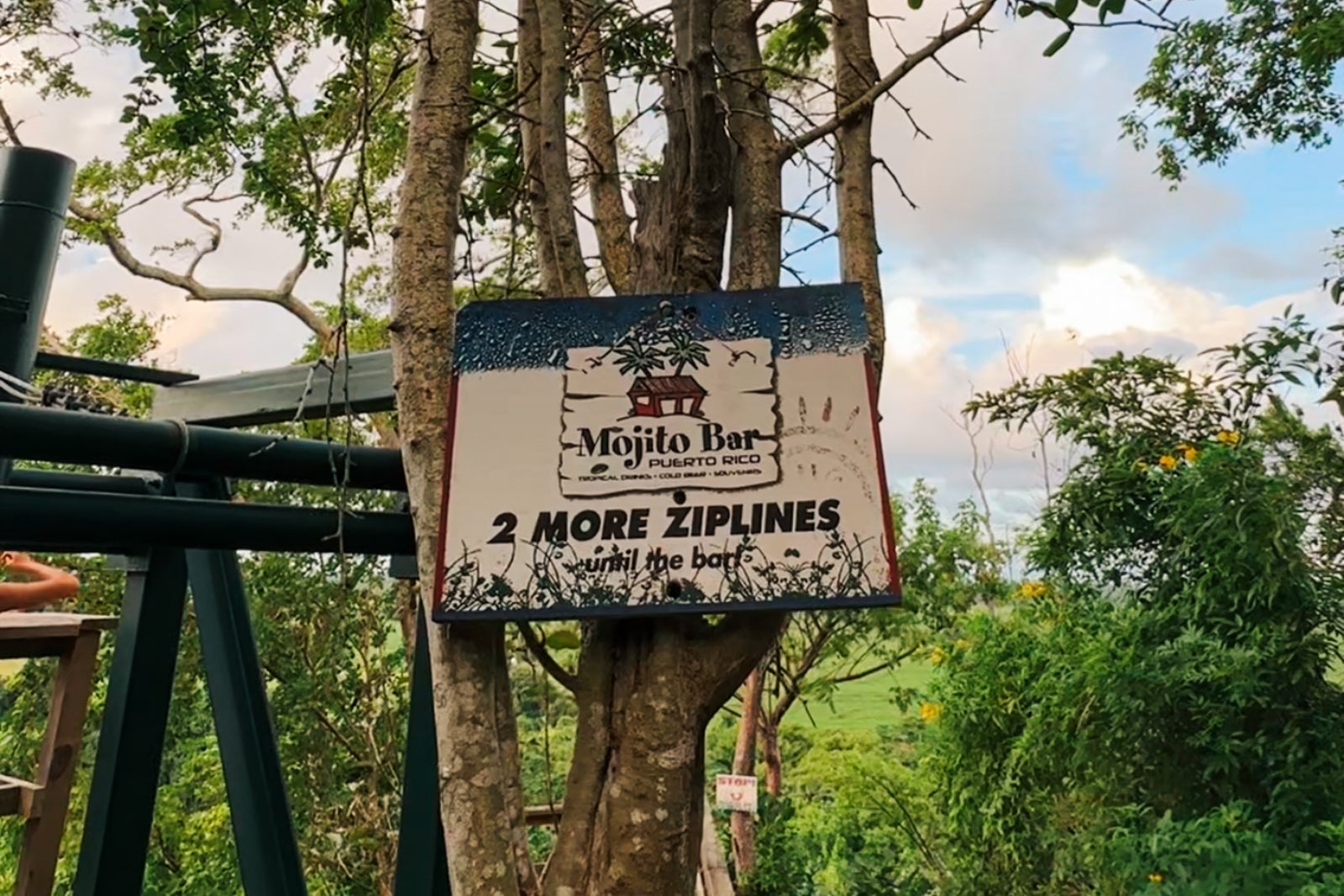 Hacienda Campo Rico's zip line course makes its final landing in a treehouse bar, where thrill-seekers can order a wide assortment of beverages and small bites.