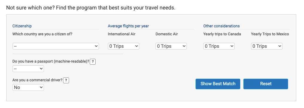 As with anything in life, with choice there comes freedom, and sometimes a lack of confidence in one's own decision-making. DHS actually provides a handy tool online to help potential members determine the program that best suits their travel needs.