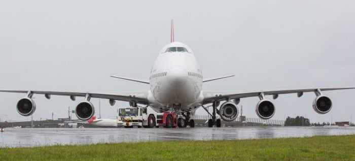 Entirely coincidentally, I was on a tour of Perth Airport when I overheard someone peering out a terminal window saying just that. I remembered that Qantas was ferrying an engine from Sydney to Johannesburg, and realized that this must be the same flight, and may have squeaked slightly with excitement.