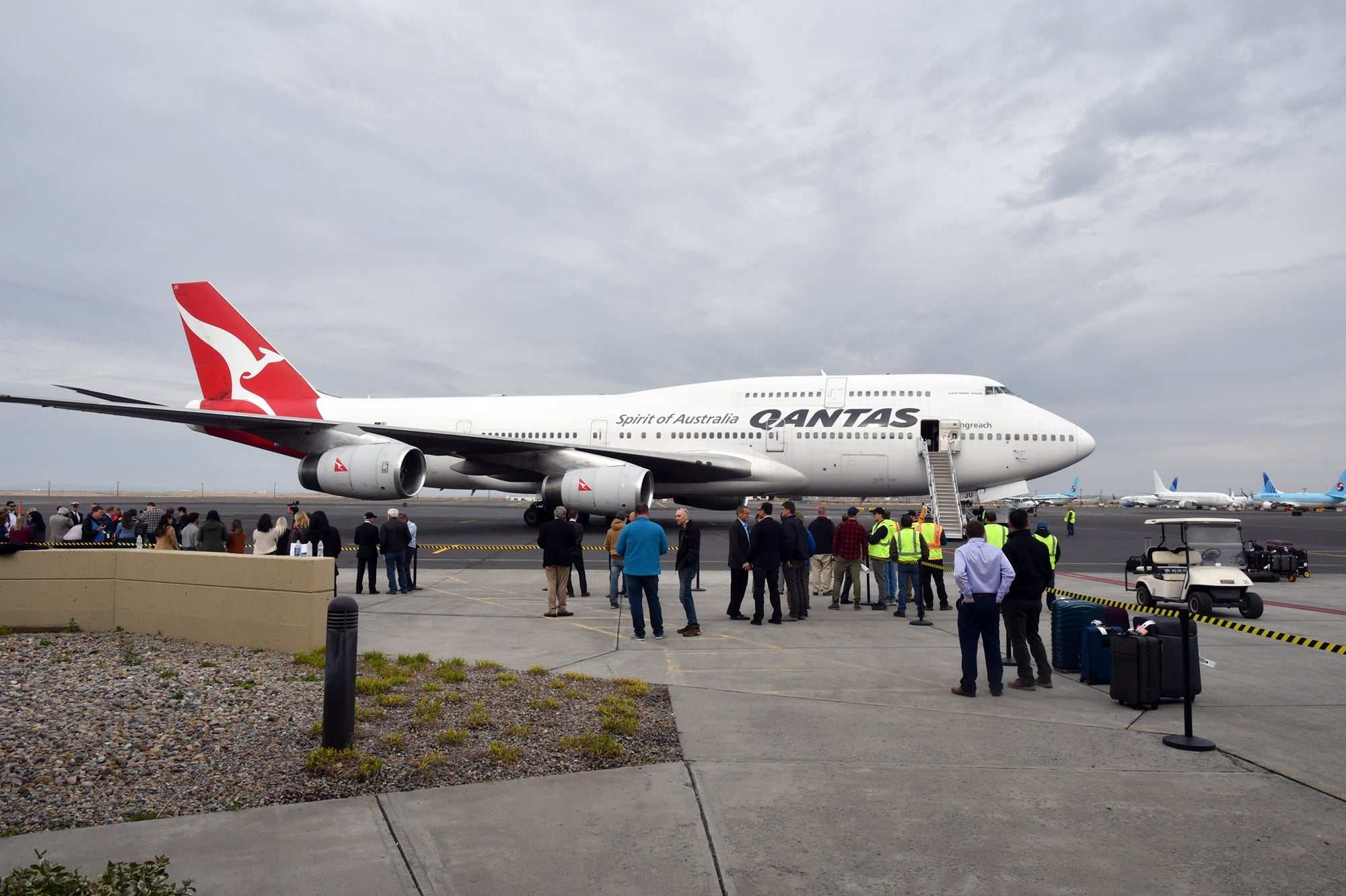 VH-OJU — the plane's tail-code identifier — had come two days earlier from Sydney, operating another unique flight as the "Qantas points plane," a one-off service for passengers redeeming points and miles. After resting in Los Angeles, the pilots took it up the West Coast to MWH on its last day as a Qantas bird, with flight number QF6021 — a special service not open for sale to passengers.