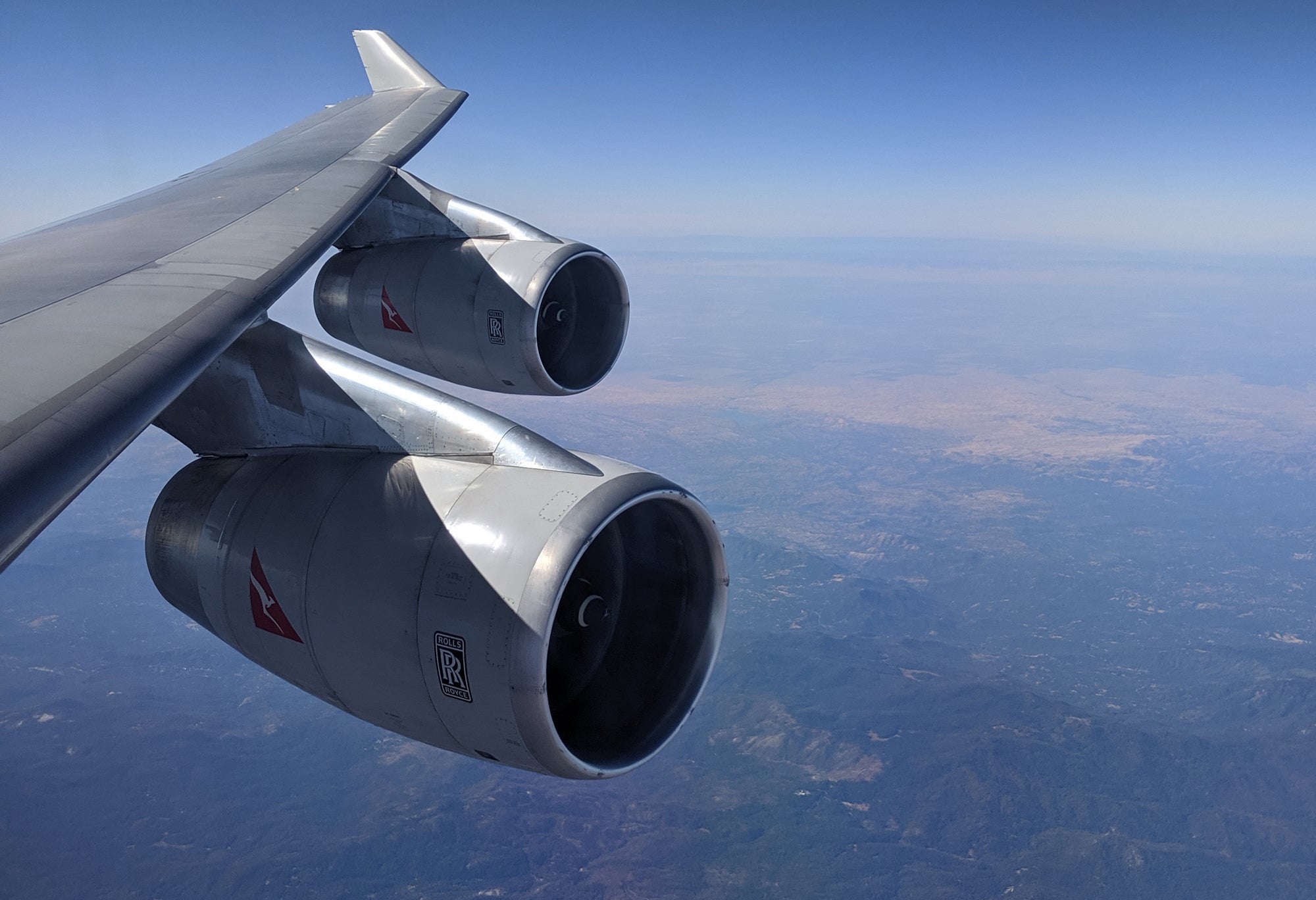 But what about that flight from LAX to Moses Lake? (MWH is the airport code for the latter, though you won't see those three letters a lot. The airport has a fully functional terminal, but currently no airline service.) It was as glorious an experience as you could expect on a jumbo jet with 364 seats but just 22 people on board: members of the press and Qantas and Rolls reps, plus a small crew. Space on board was so plentiful and the atmosphere so relaxed that one could wish for a longer time in the air.