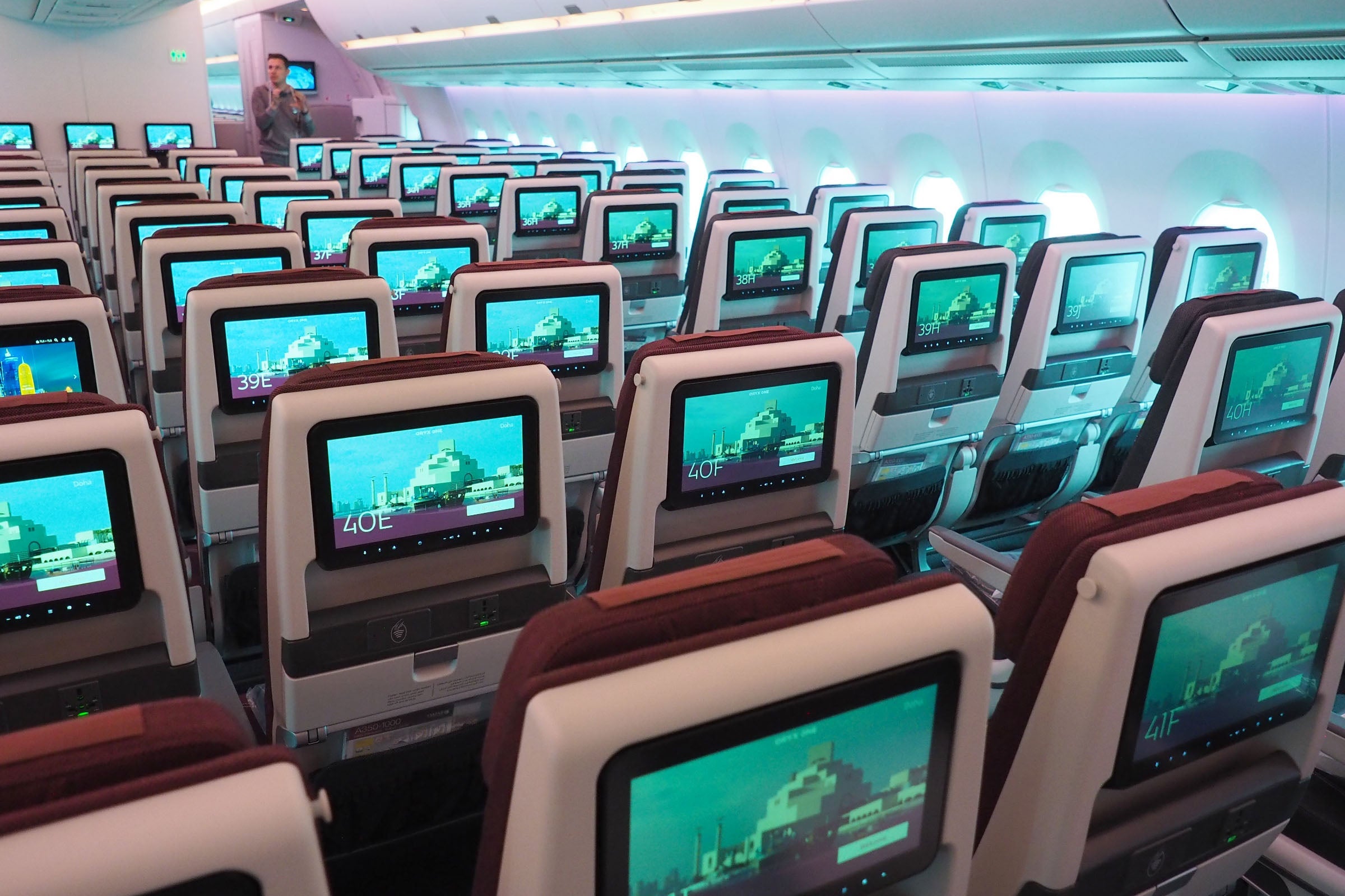 Business class will drop from 48 Qsuite seats on the 777-300ER to 46. The A350 also offers more comfort in economy, with seats arranged in a 3-3-3 configuration, instead of 3-4-3 on the 777-300ER. There are a total of 281 coach seats, compared with 312 on the 777 used today — while passengers will be more comfortable on board, the airline isn't giving up too many seats.