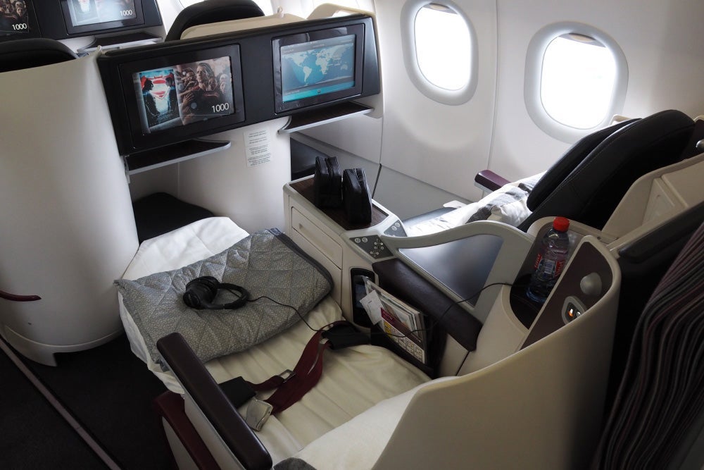 QR also provides a mattress pad, full-size pillow and a comforter — the same offered on longer commercial flights.