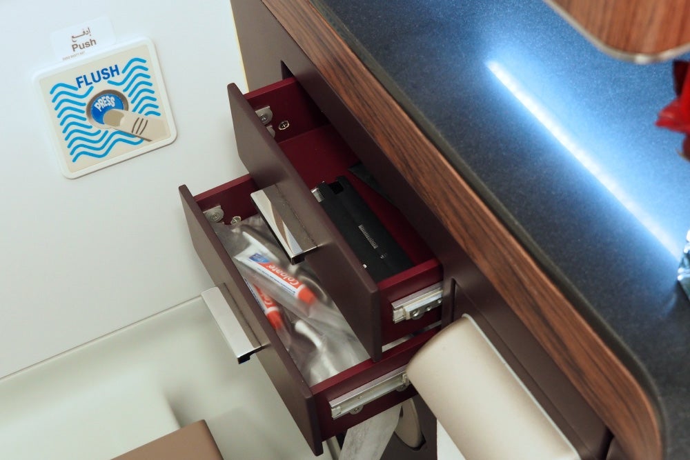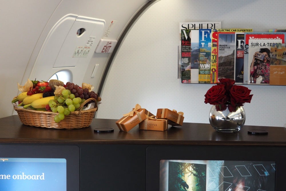 There's also a handheld touchscreen remote. And passengers receive amenity kits (the same version offered on commercial flights).