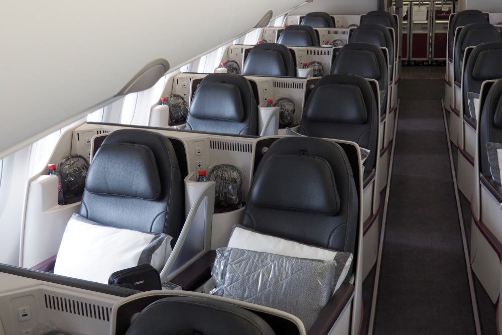 Most intercontinental airliners offer at least two classes of service — business and economy, at a minimum — with the world's largest airlines operating three classes or more. There are a handful of planes with only a business-class cabin floating around, however, though they're few and far between. Until recently, SAS offered such a product, and Singapore discontinued its nonstop all-biz Newark-SIN flight, but British Airways still flies an all-biz plane on long-haul trips, as does La Compagnie. And, as I discovered at the Farnborough Air Show this week, so does Qatar Airways.