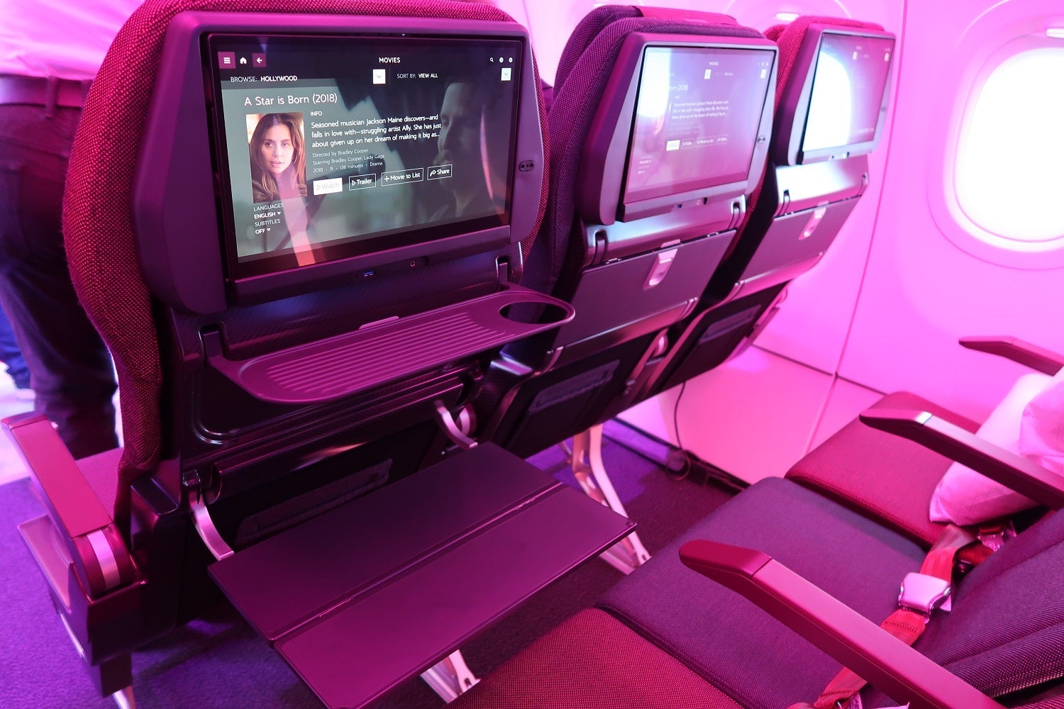 Tray table: The new economy seat has two tray tables: A bi-fold standard tray table and an additional tray table with cup holder with a non-slip bottom, which could be useful if you wanted to bring your own entertainment device.