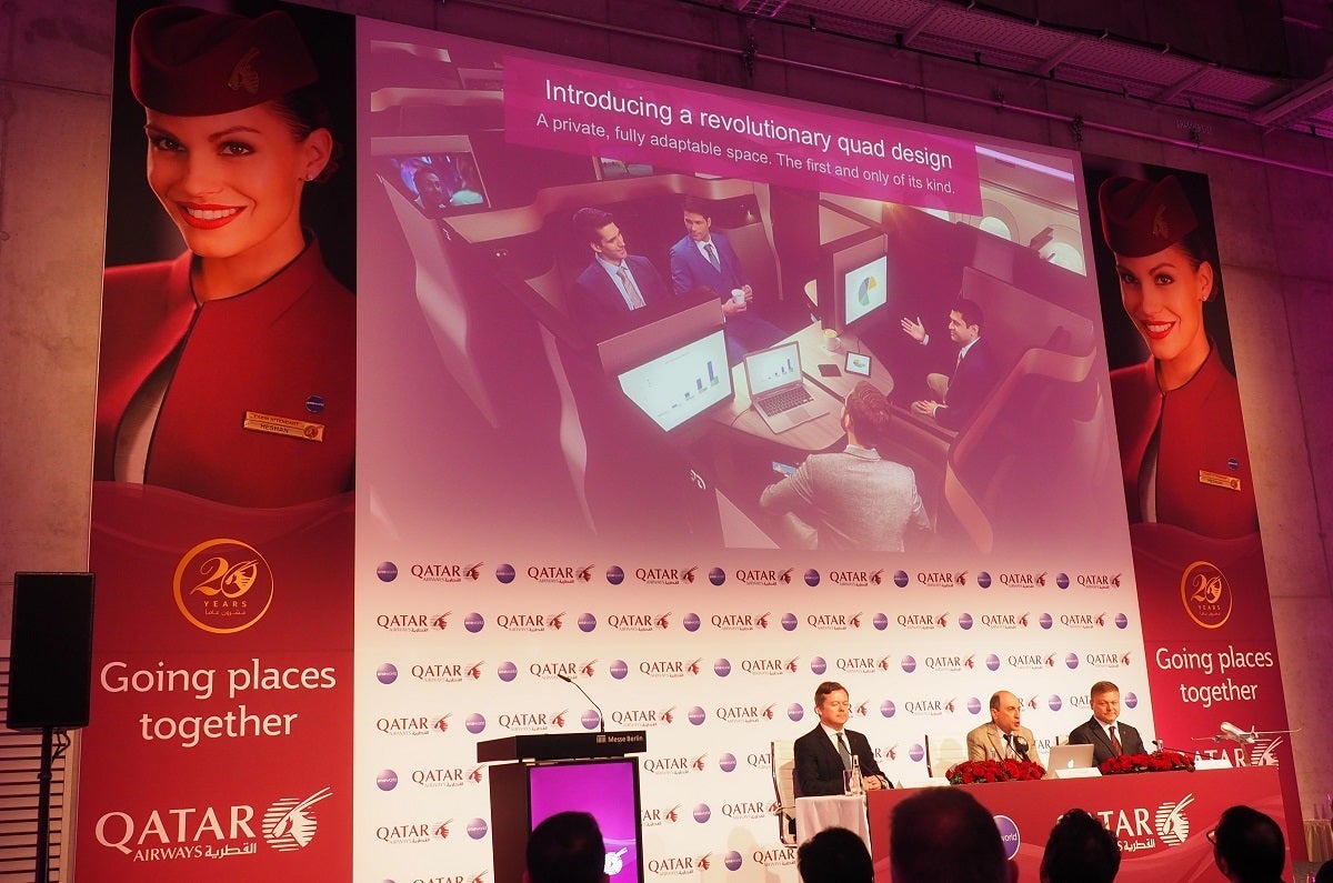 Qatar showed a mock-up representing just how much work you'll be able to do while mid-flight thanks to the quad-design.
