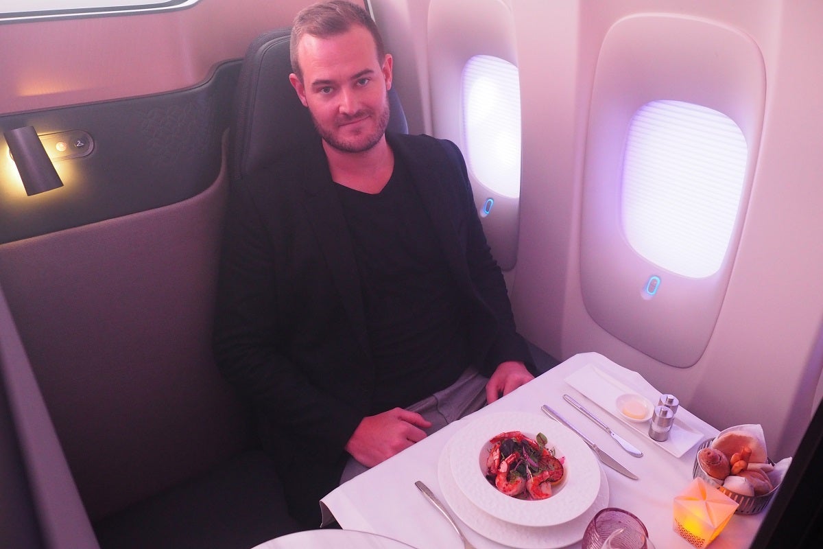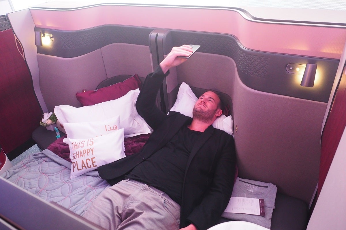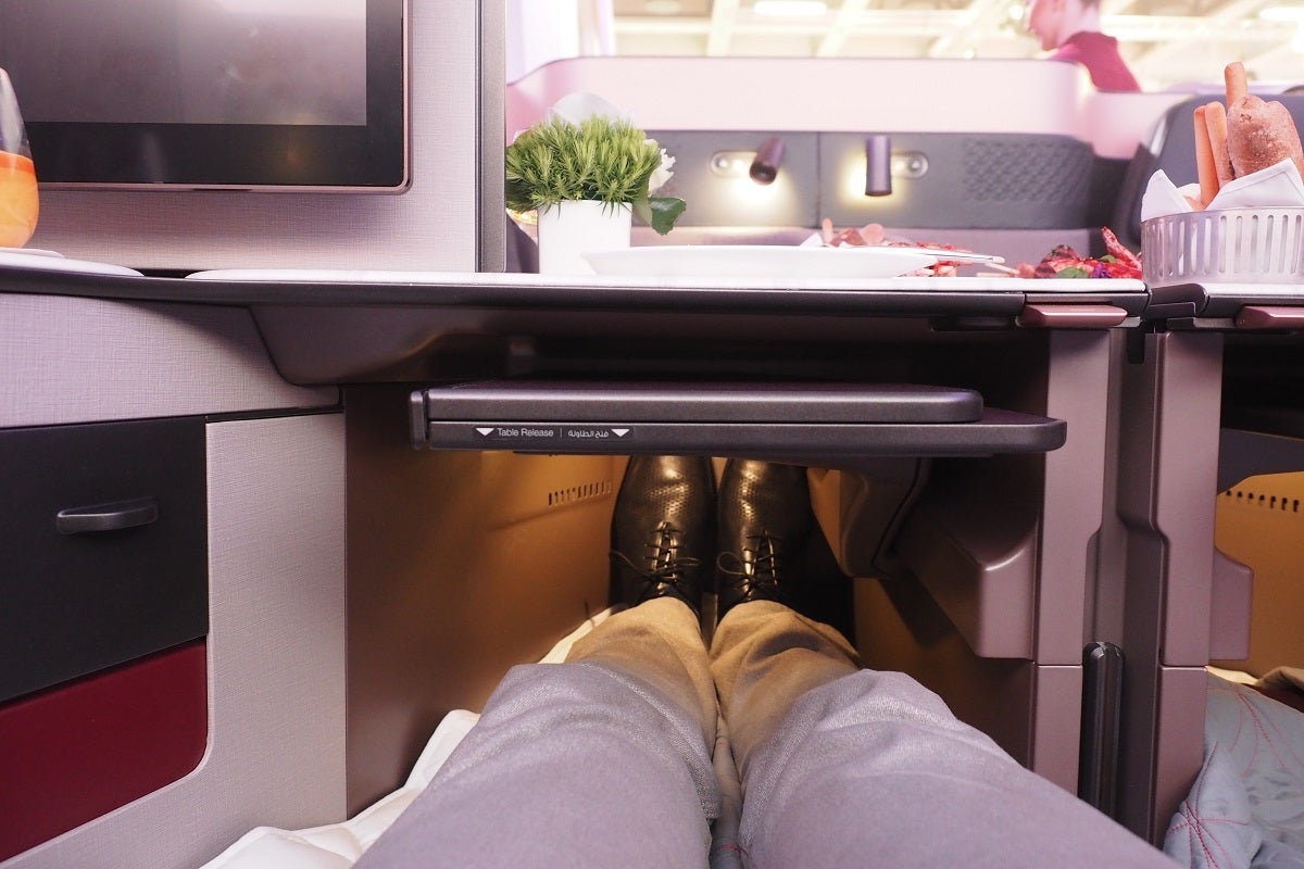 Many business class products feature lie-flat seats that are plenty long when fully reclined, but the foot wells are so small that they prevent taller passengers from being comfortable. Not so with this product — TPG's 79-inch height and size 14 shoes were all able to fit fine in the Qsuite.