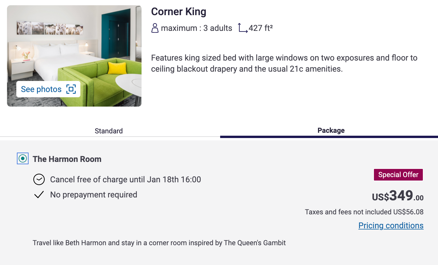 Now, fans can take their love of all things chess and Beth Harmon one step further by booking "The Harmon Room" at the 21c Museum Hotel in Lexington, KY, where the show is set. The hotel describes the room as "a retro time capsule of American mid-century modern design."