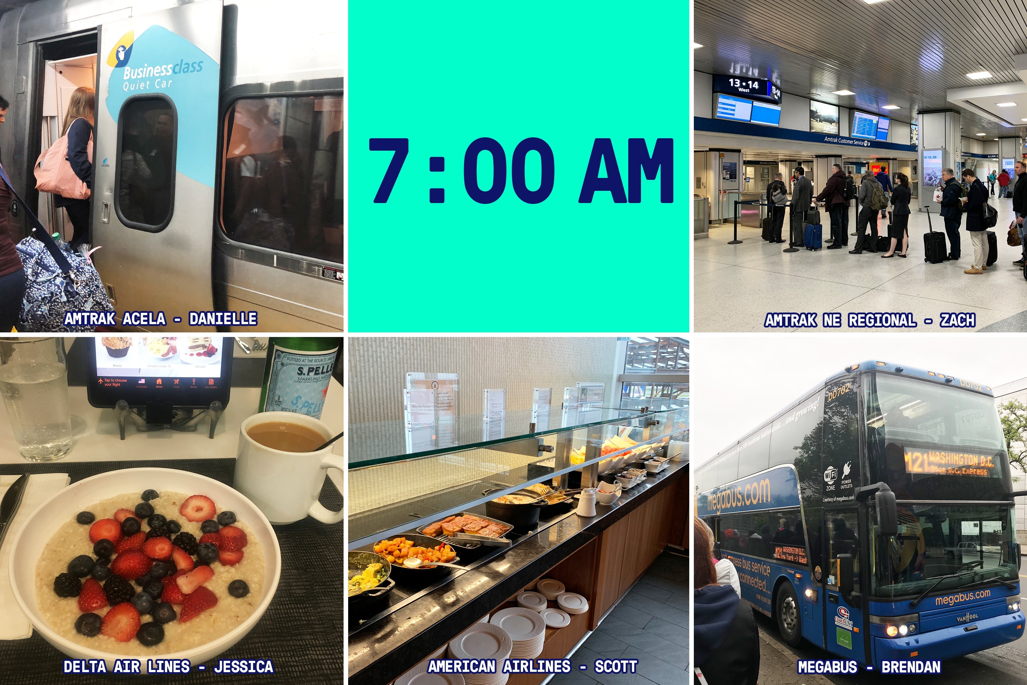 Amtrak Acela: The train departed on time at 7am, which made Danielle the first one on her way to DC. She quickly connected to Wi-Fi and found it decent enough for her to be productive for the ~3 hour journey.
