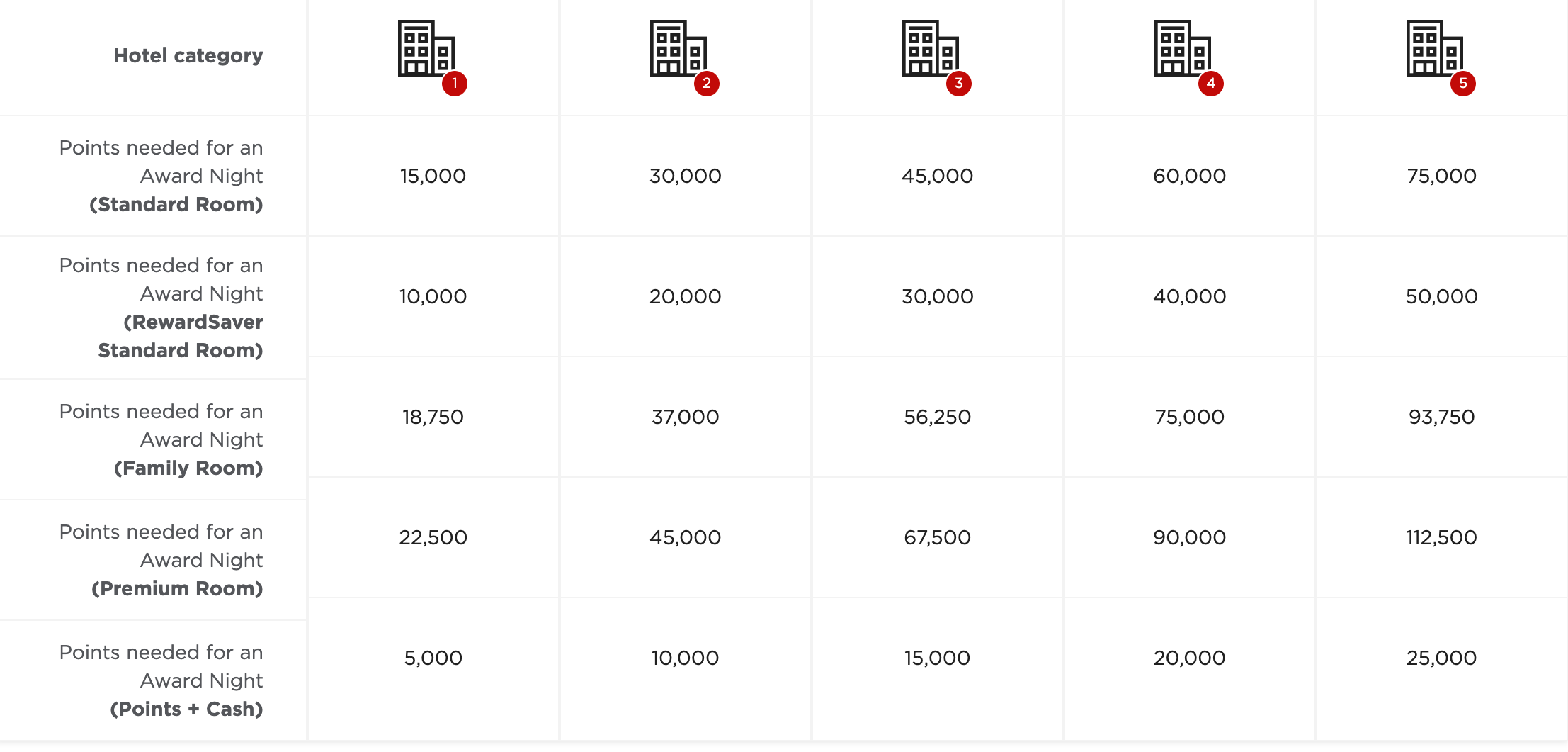 - Even though there will only be five categories come June, top-tier Category 5 properties will require 75,000 points, while current Category 7 properties require 70,000