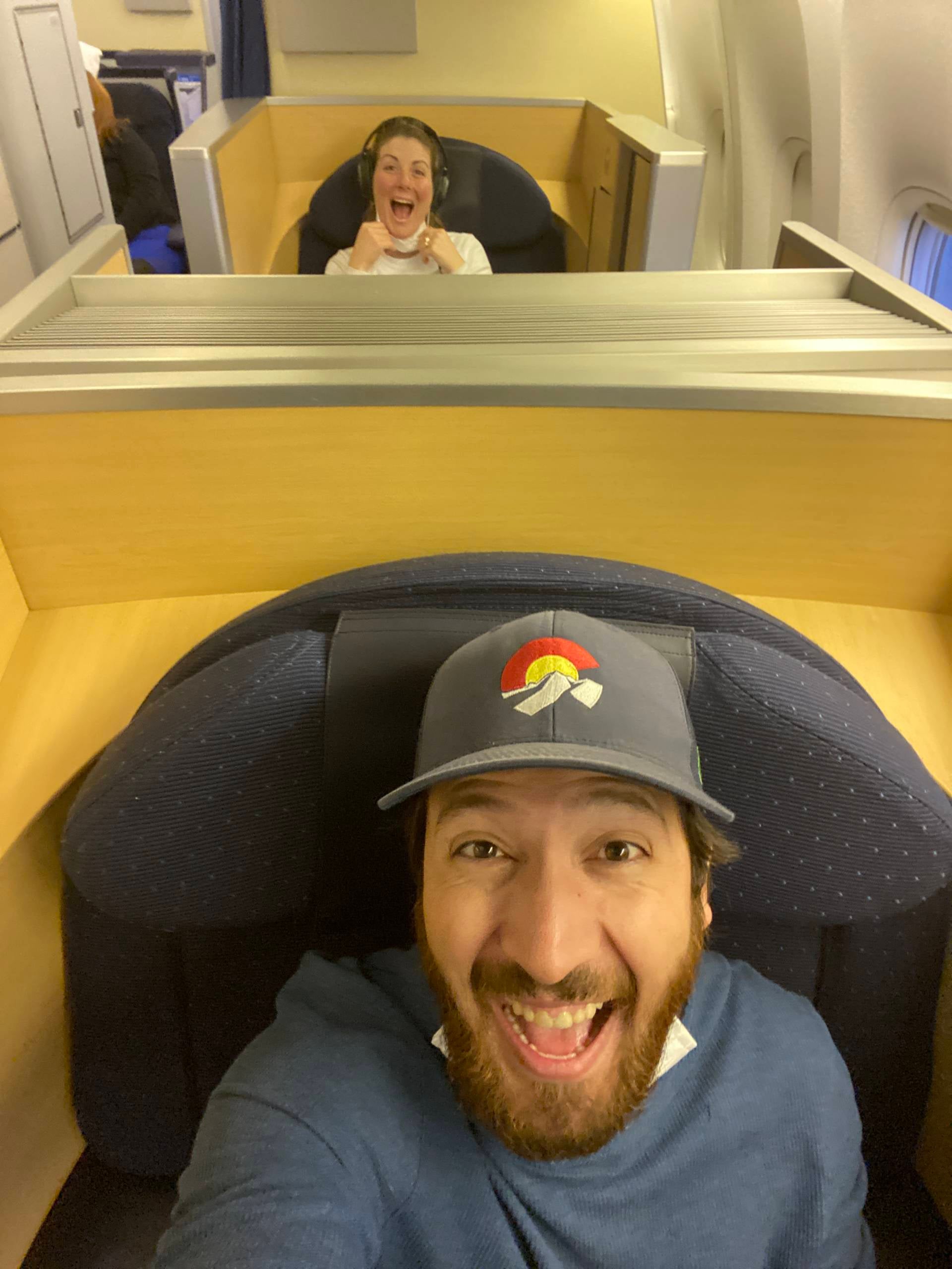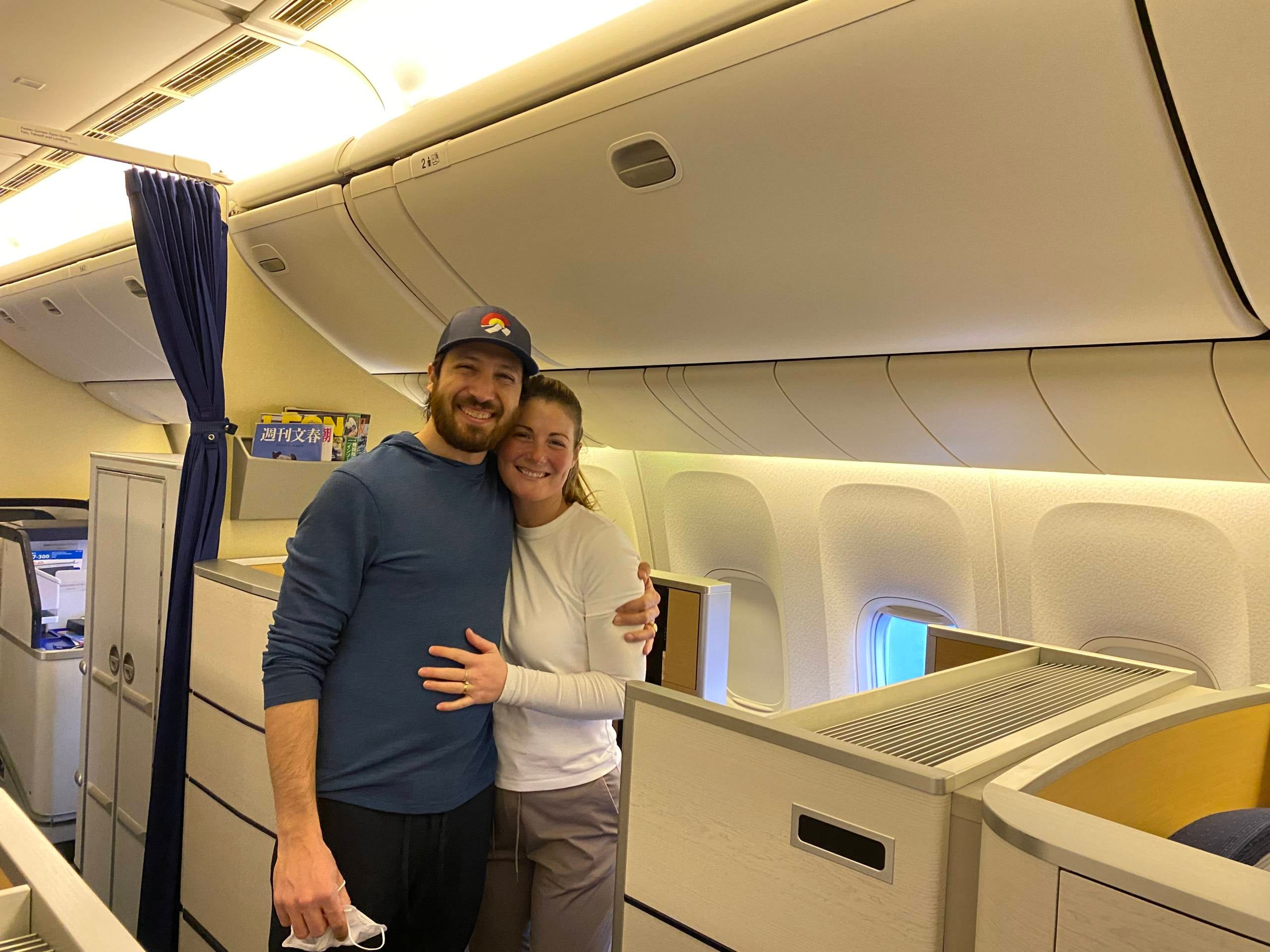William has a tip for couples considering ANA first class. "We didn't realize this at first, but the ANA first-class seat arrangement we had isn't so great for couples the way the United Polaris seat arrangement is. There was really no way for us to sit next to each other and be able to watch a movie together or be able to lean over for a quick kiss. That was our one and only qualm with this product/experience." he said. Otherwise, "The ANA first-class experience was by far the best flight experience we have ever had in our lives (so far)! It'll be hard to top!"