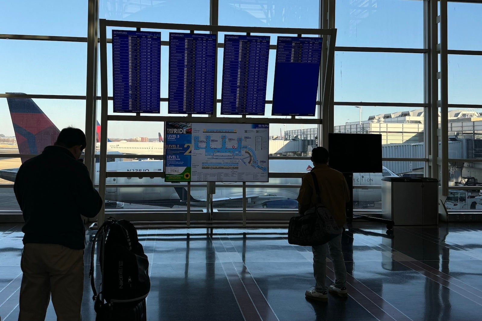 Travelers check their flight status at Ronald Reagan Washington National Airport (DCA). SEAN CUDAHY/THE POINTS GUY
