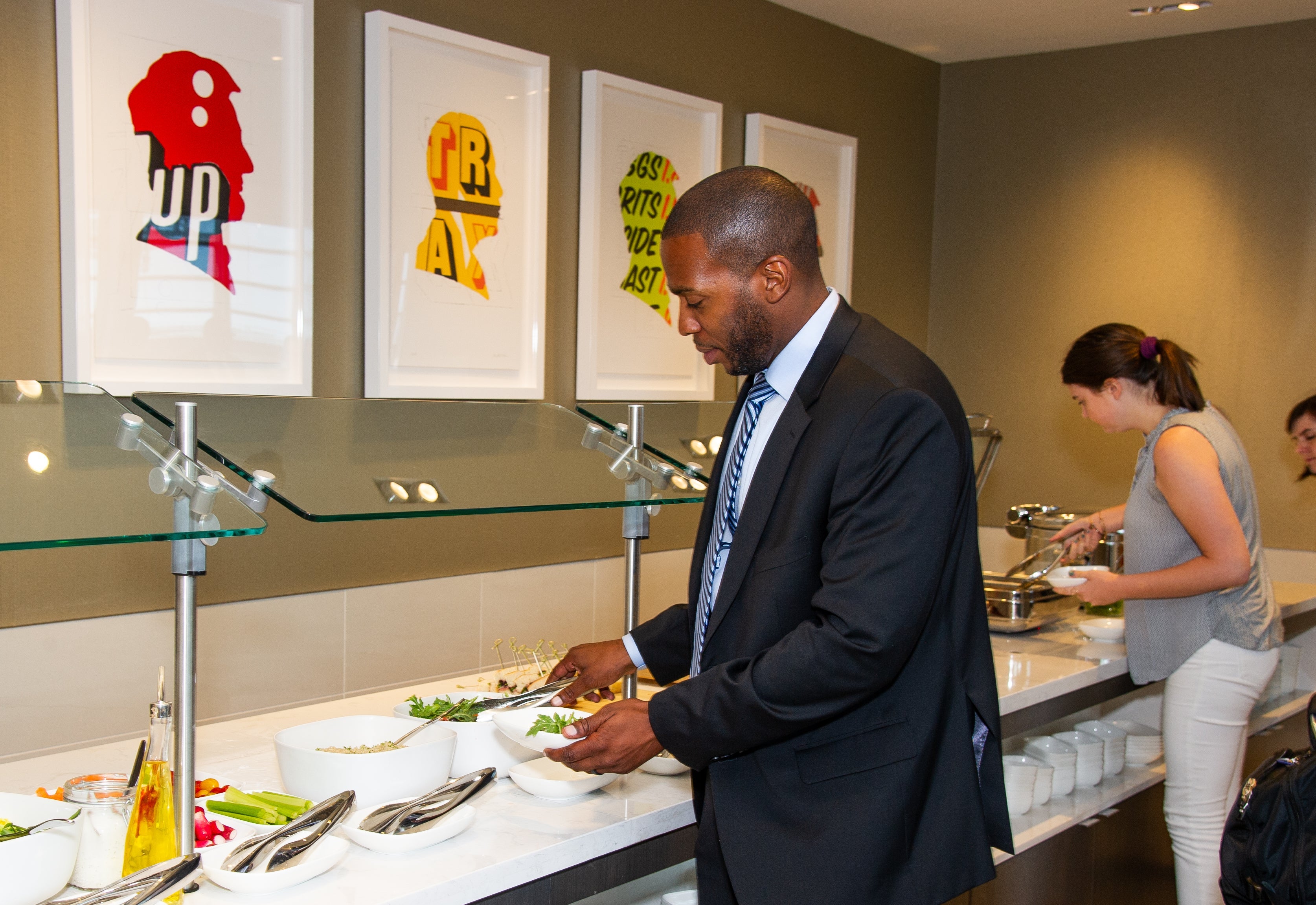 Highlights of DCA's newly renovated Sky Club include an additional 1,800 square feet of space, as well as new food options from DC-based chef Marjorie Meek-Bradley. On the menu and at the buffet, passengers can expect to find fare from Meek-Bradley that's rotated seasonally.