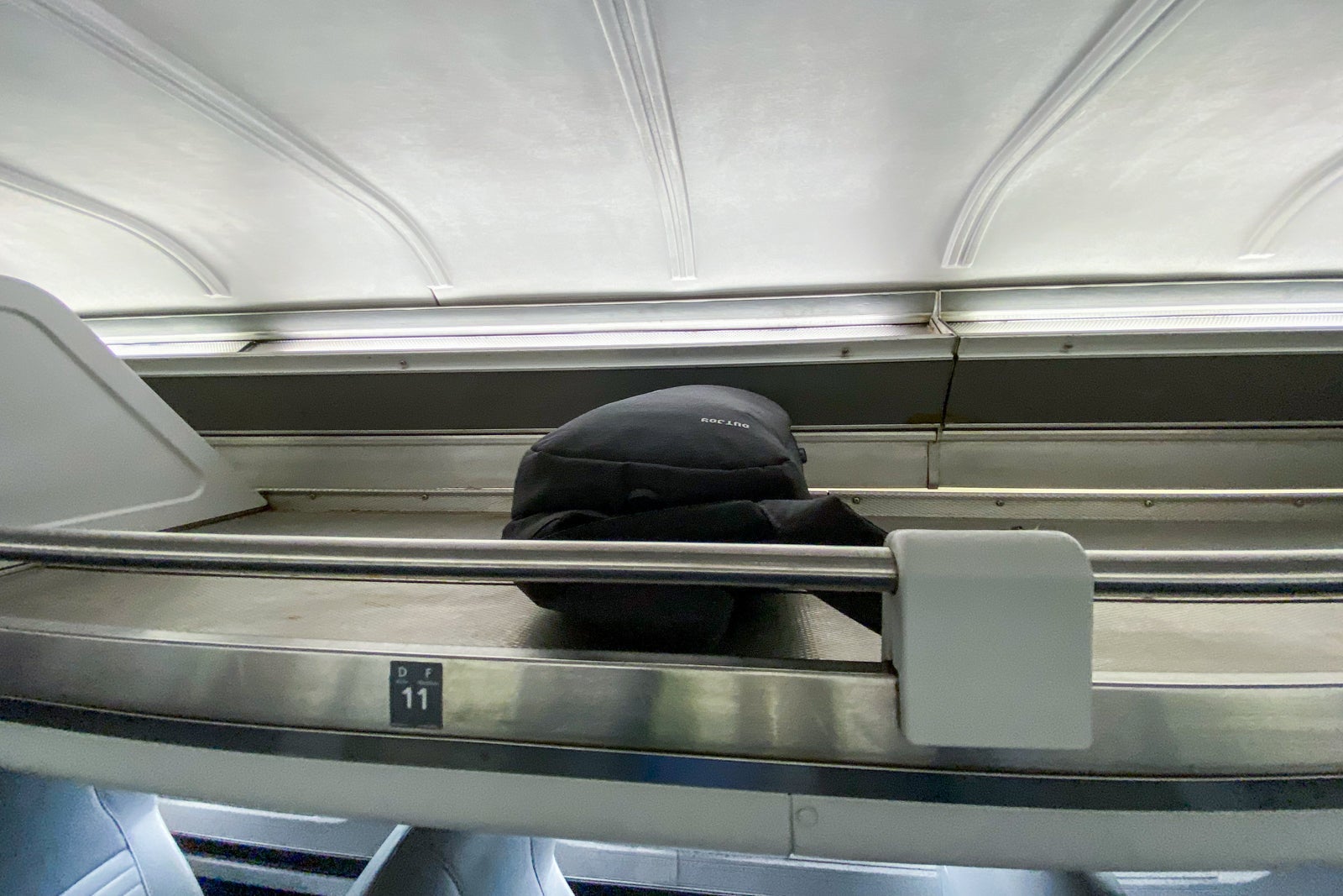 Although there is no checked-bag service, there is ample luggage storage space onboard, with wide overhead shelves and underseat storage. I witnessed people easily fitting medium-sized suitcases in the overhead storage shelves. And there is space for everyone's bags — so, unlike on a plane, there's little reason to worry about full bins, even if you're the last to board.