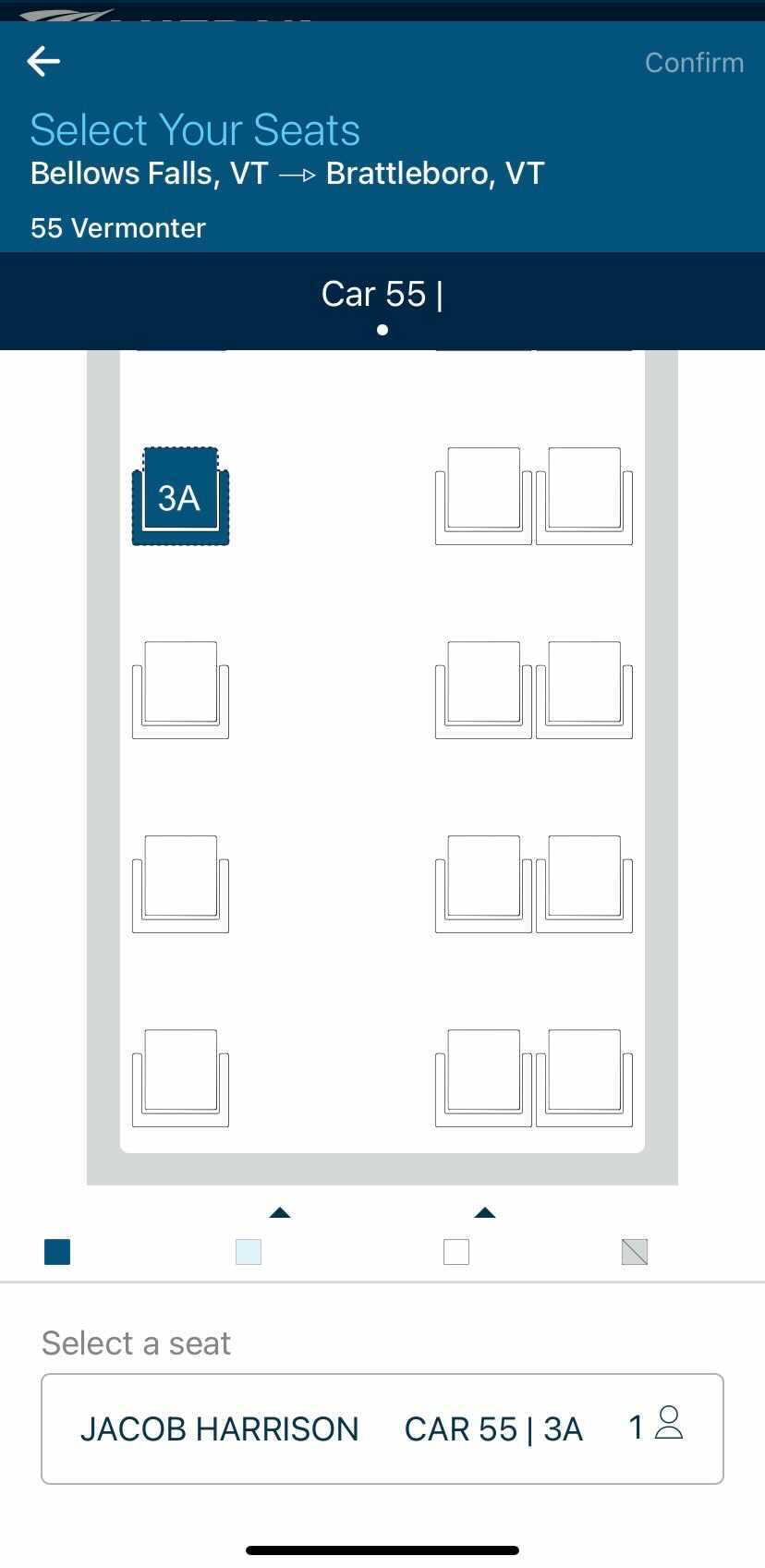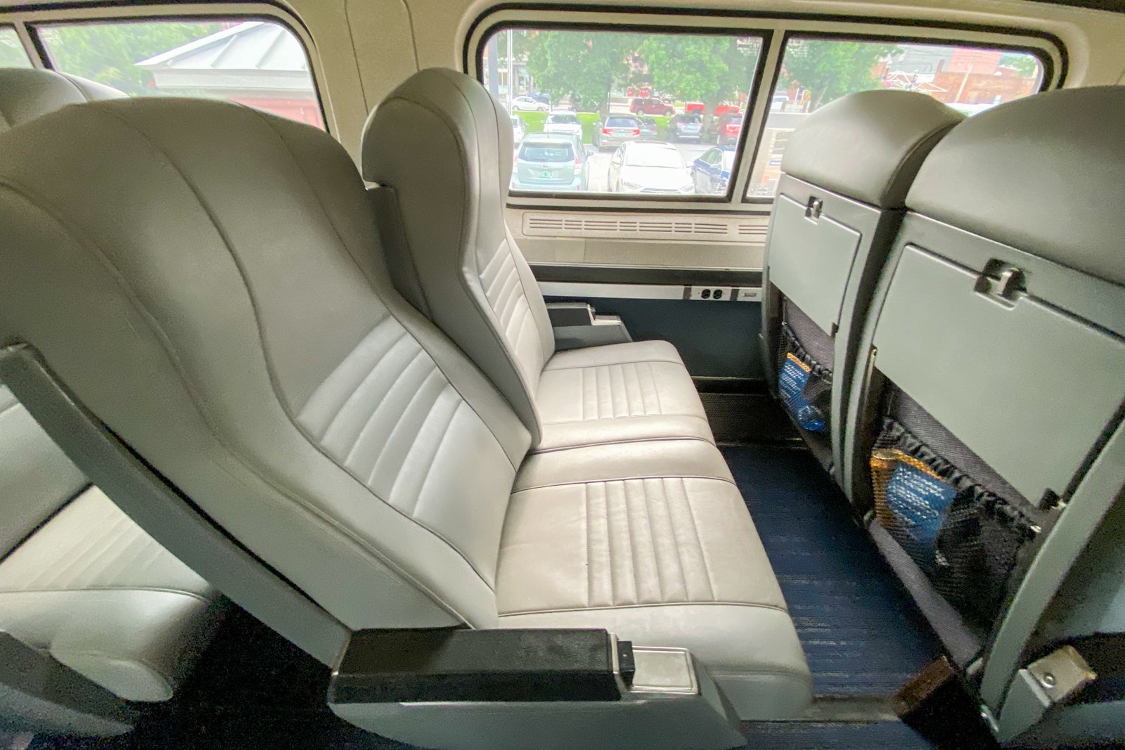The coach seats on the Vermonter are set up in a 2-2 configuration and offer generous legroom, padding and recline.