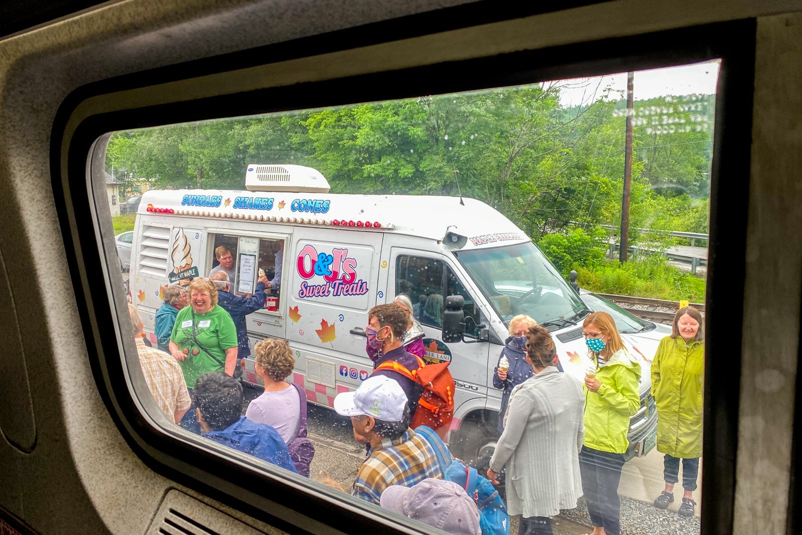 One station in particular, Montpelier, had hundreds of locals welcoming the train, and the best part: They were giving away free "maple creemees" -- Vermont's famous maple syrup-flavored ice cream.