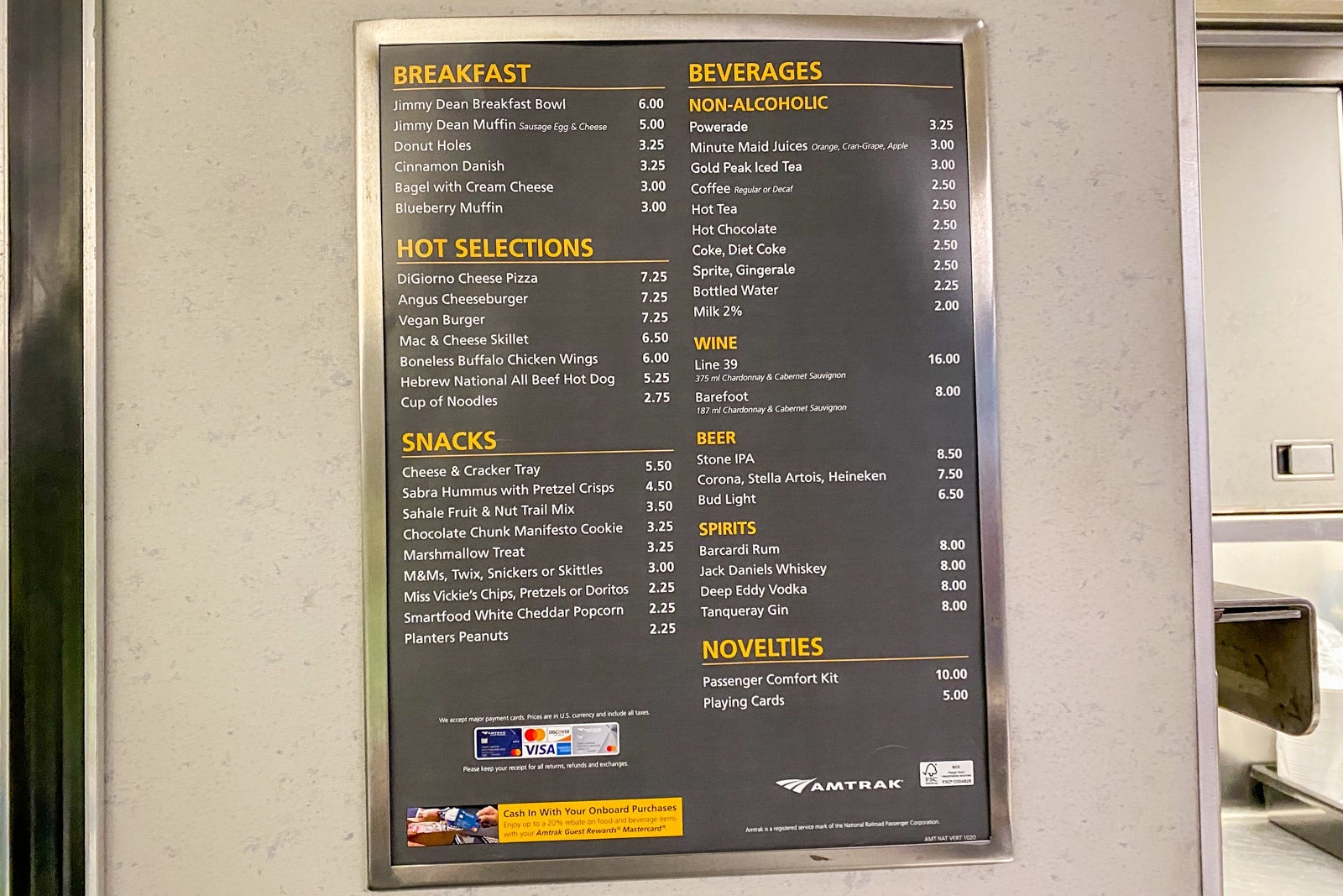 Additionally, Wi-Fi is offered on the train, but it wasn't working at the beginning of the ride. However, a fellow passenger notified the crew, and they happily troubleshot the problem. A few minutes after the crew was notified, the Wi-Fi started working.