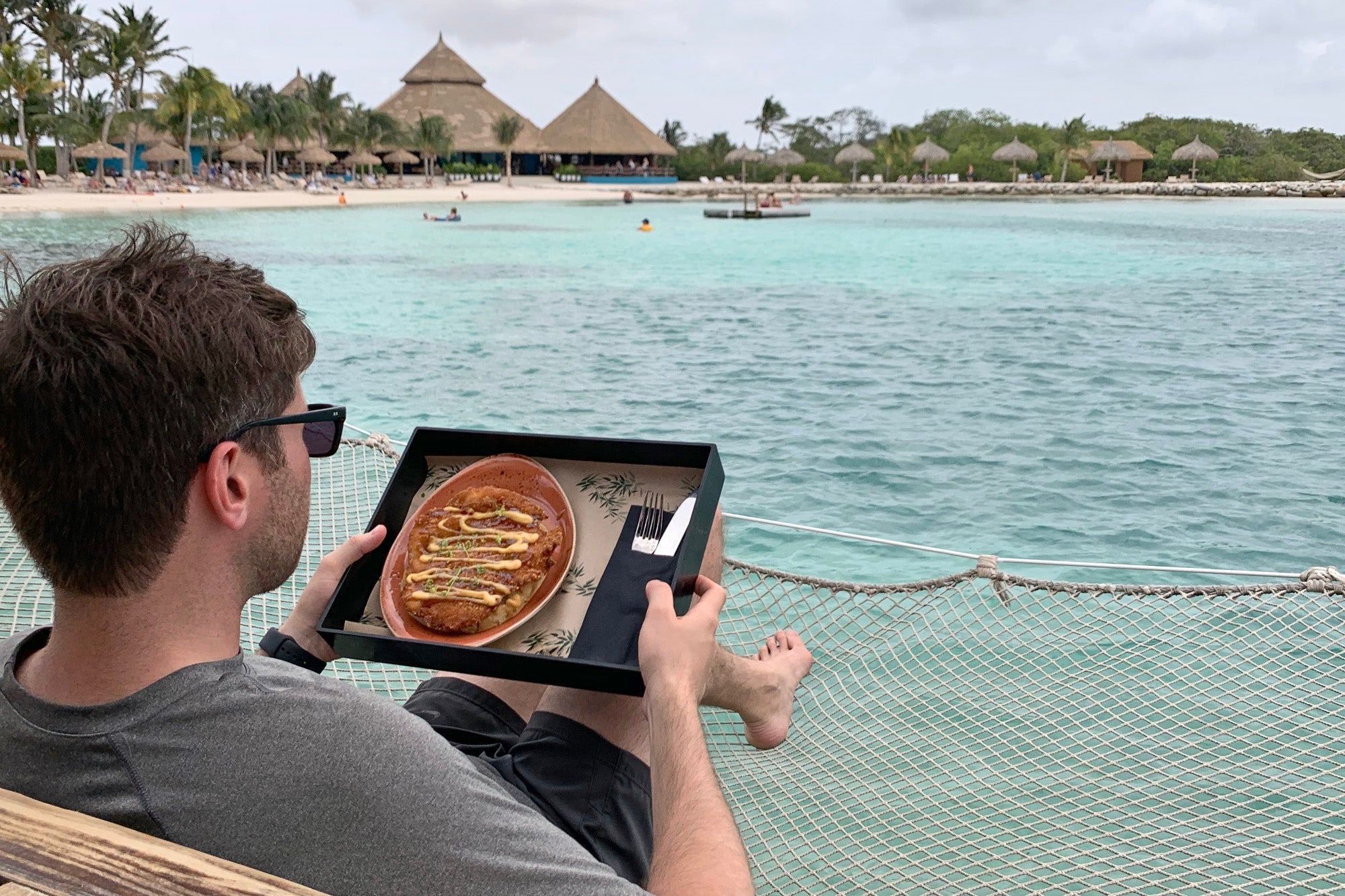 For the best views and some serious fun in the sun, you'll want to head over to Renaissance Island — just a 10-minute boat ride from the hotel marina. The ferry is free, but you'll need to swipe your active room key to board. Hotel rates vary quite a bit, though I managed to score a base room in the Marina Hotel for $164 per night (before taxes and fees), then ended up clearing into an Ocean Suite thanks to my Suite Night Awards.