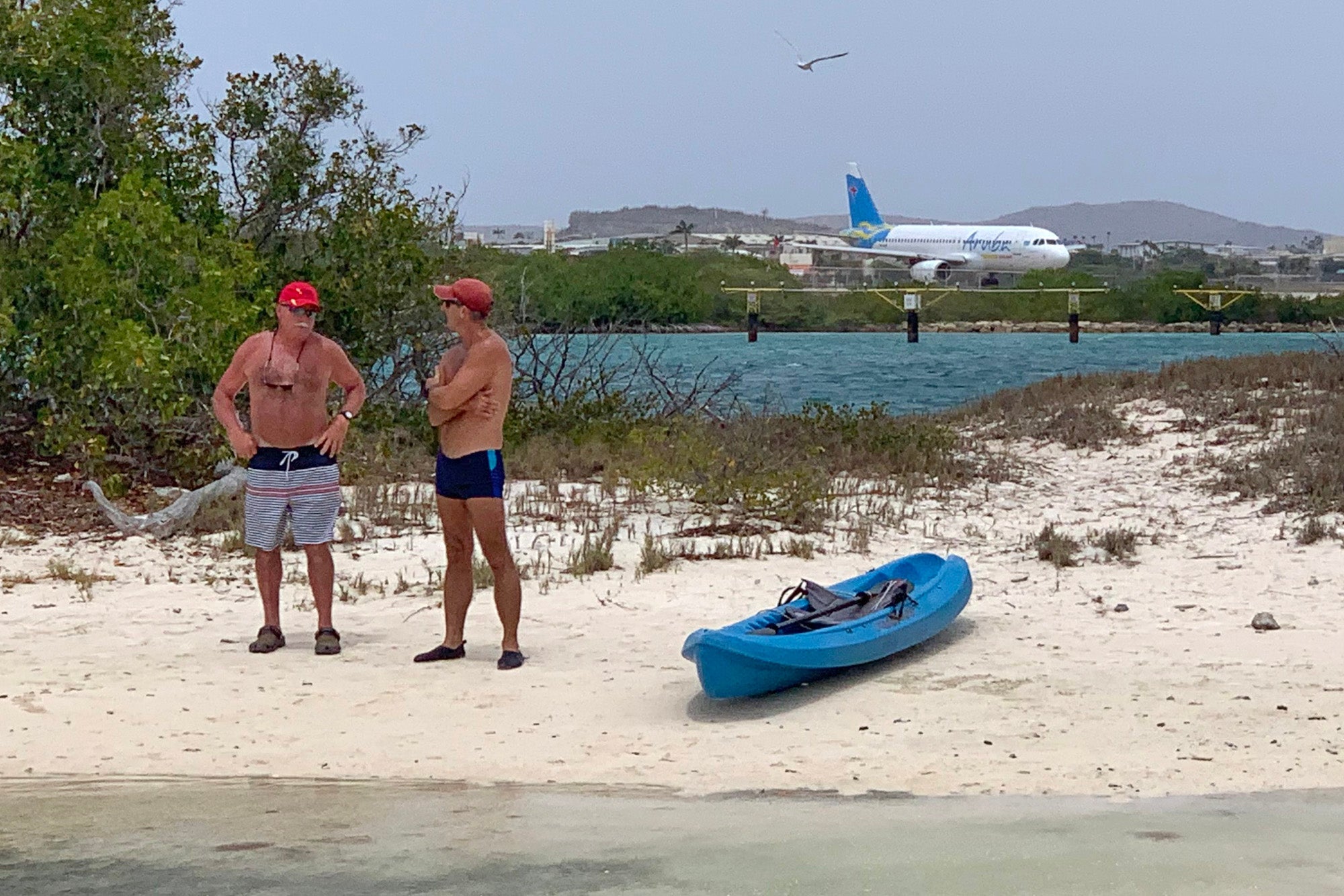 Renaissance Island is divided into two sections: Flamingo Beach, for adults, and Iguana Beach, which is kid-friendly. Flamingo Beach has the best in-water plane-spotting, but you'll still need to venture out for unobstructed views.