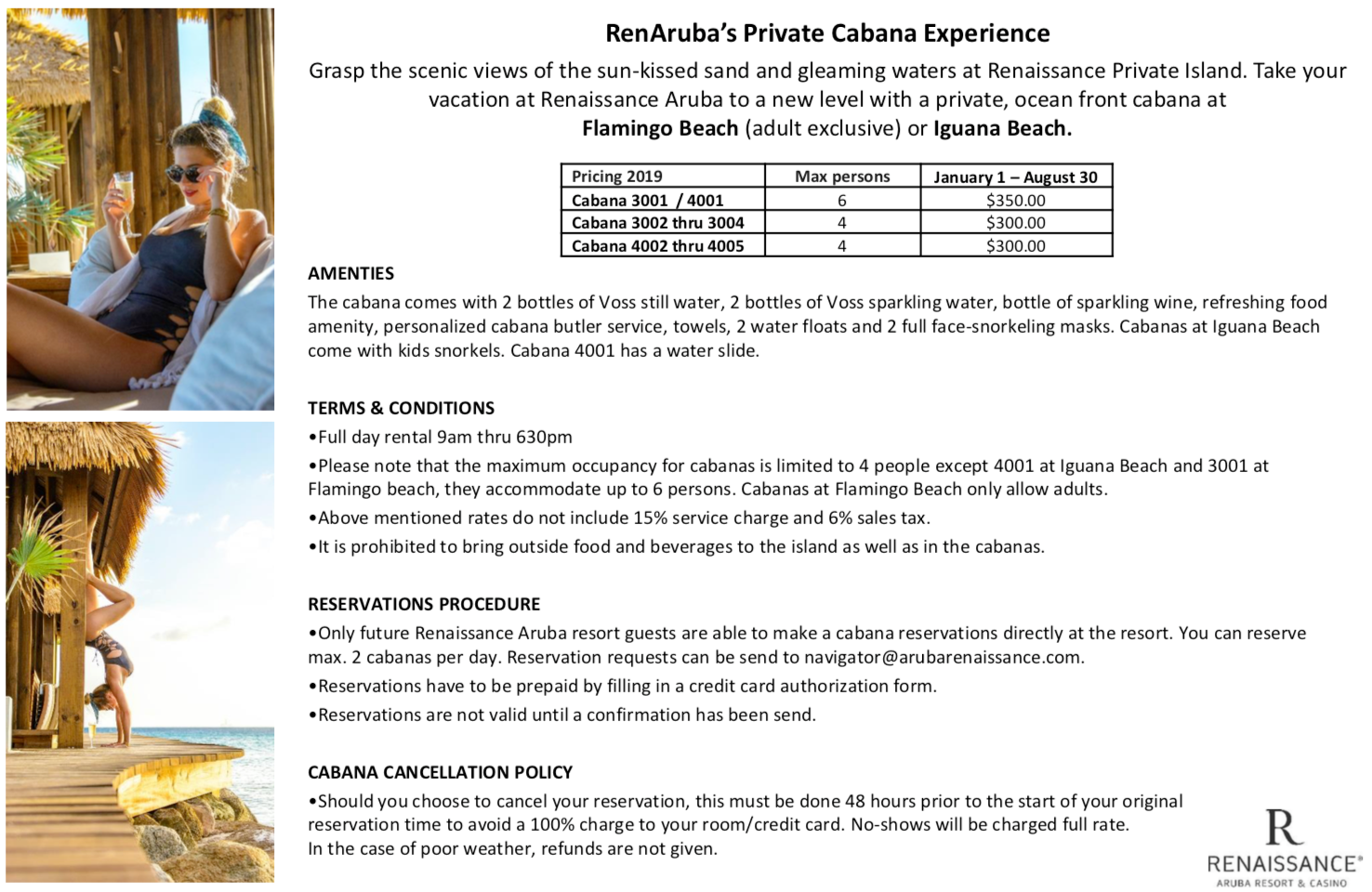 Availability was limited when I reached out about 10 days before arrival, but I was able to secure a cabana on Iguana Beach for $300, plus a 15% service charge and 6% tax. It's a bit steep for a couple, perhaps, but reasonable when split between four friends.