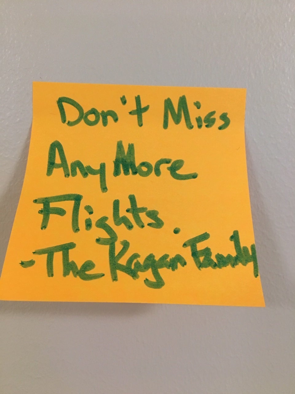 Given the wall's location just past security, we aren't surprised that some of the earliest postings are directly related to travel and the airport experience. Here's a sampling: