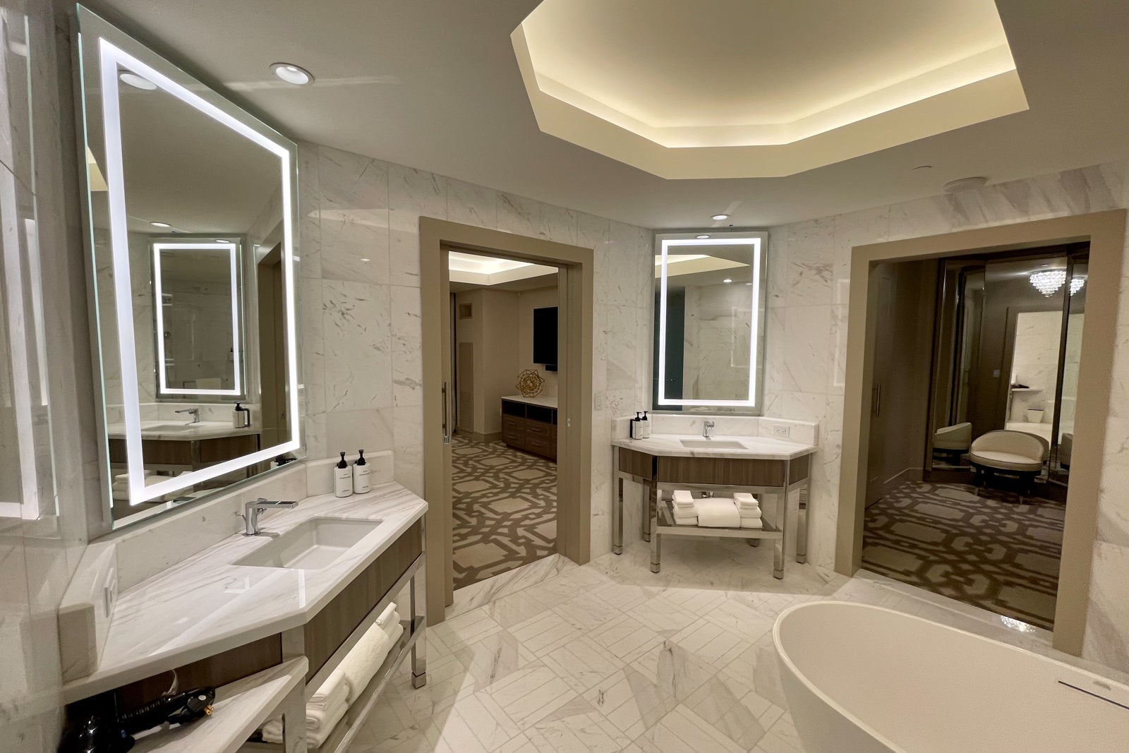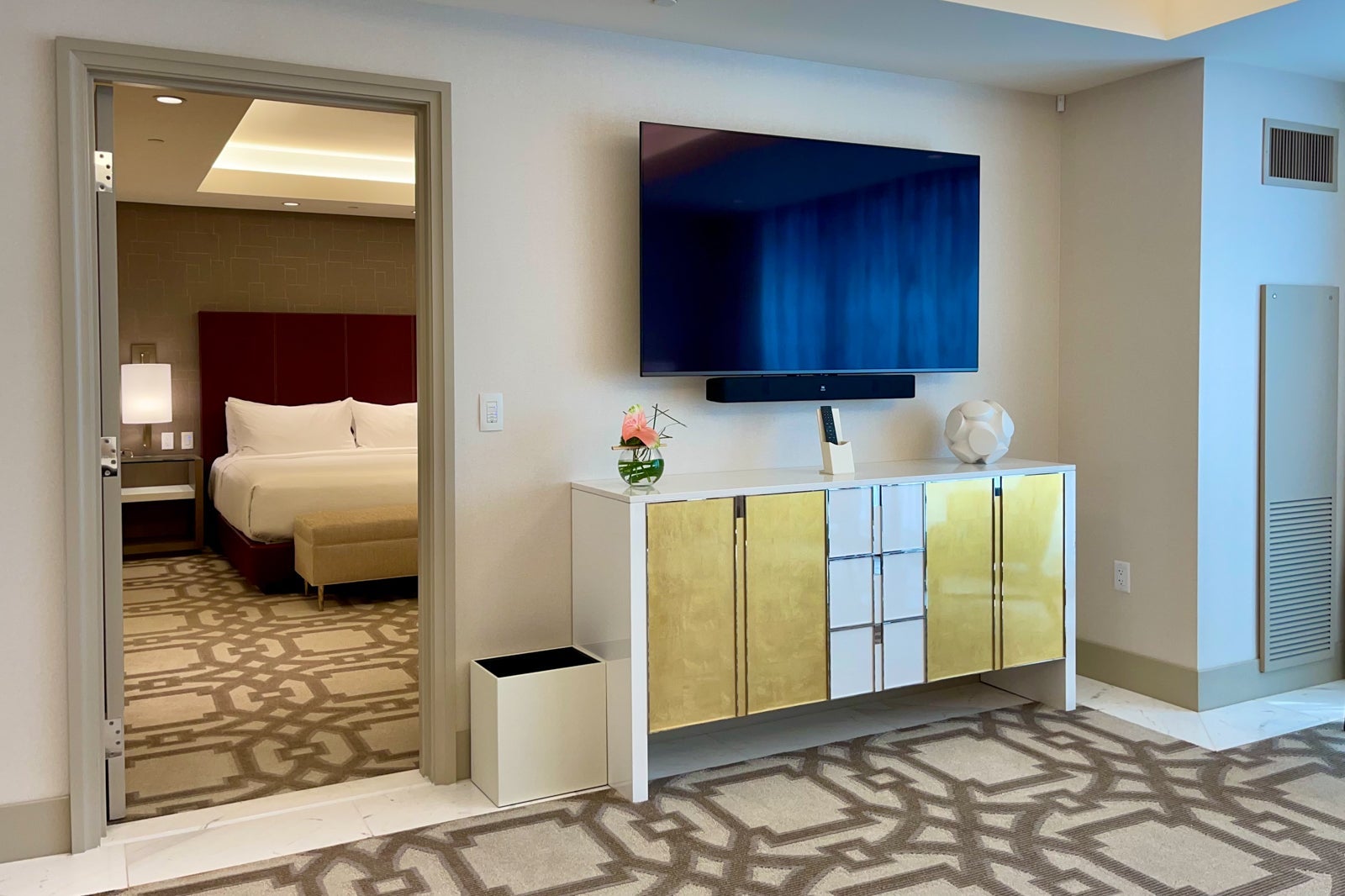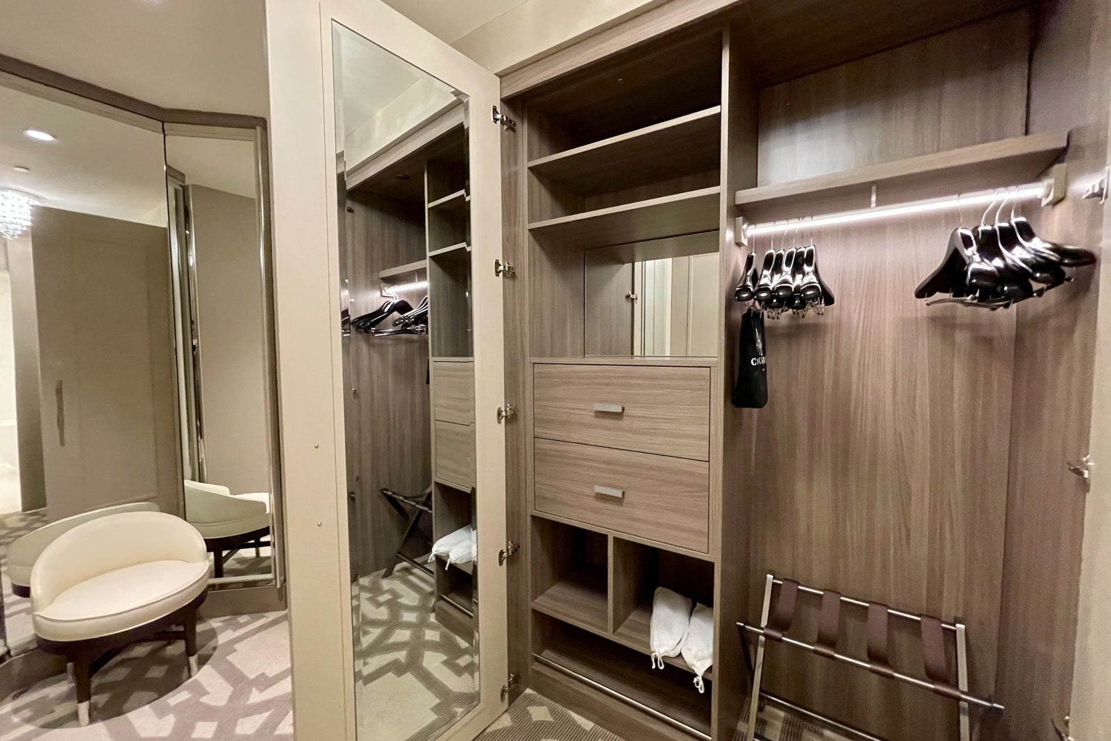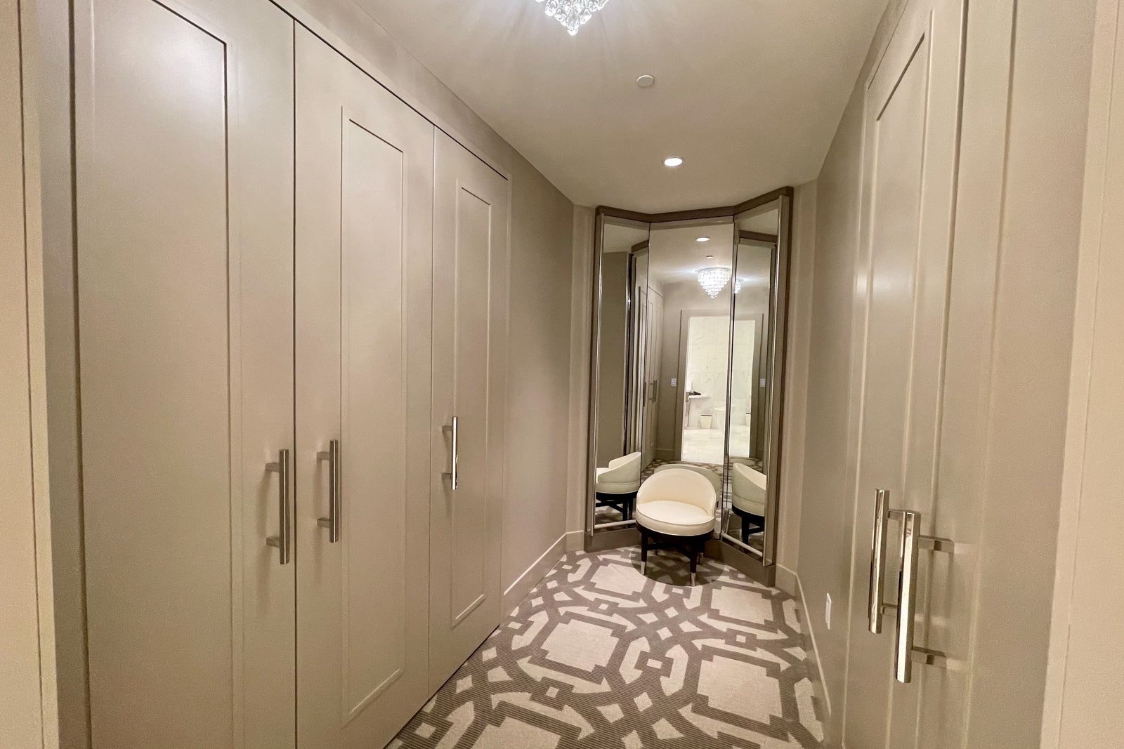 We also checked out an entry-level one-bedroom suite that felt quite similar to the suite at the Hilton, except it had an added walk-in dressing room, decked out with four closets and a 180-degree mirror.