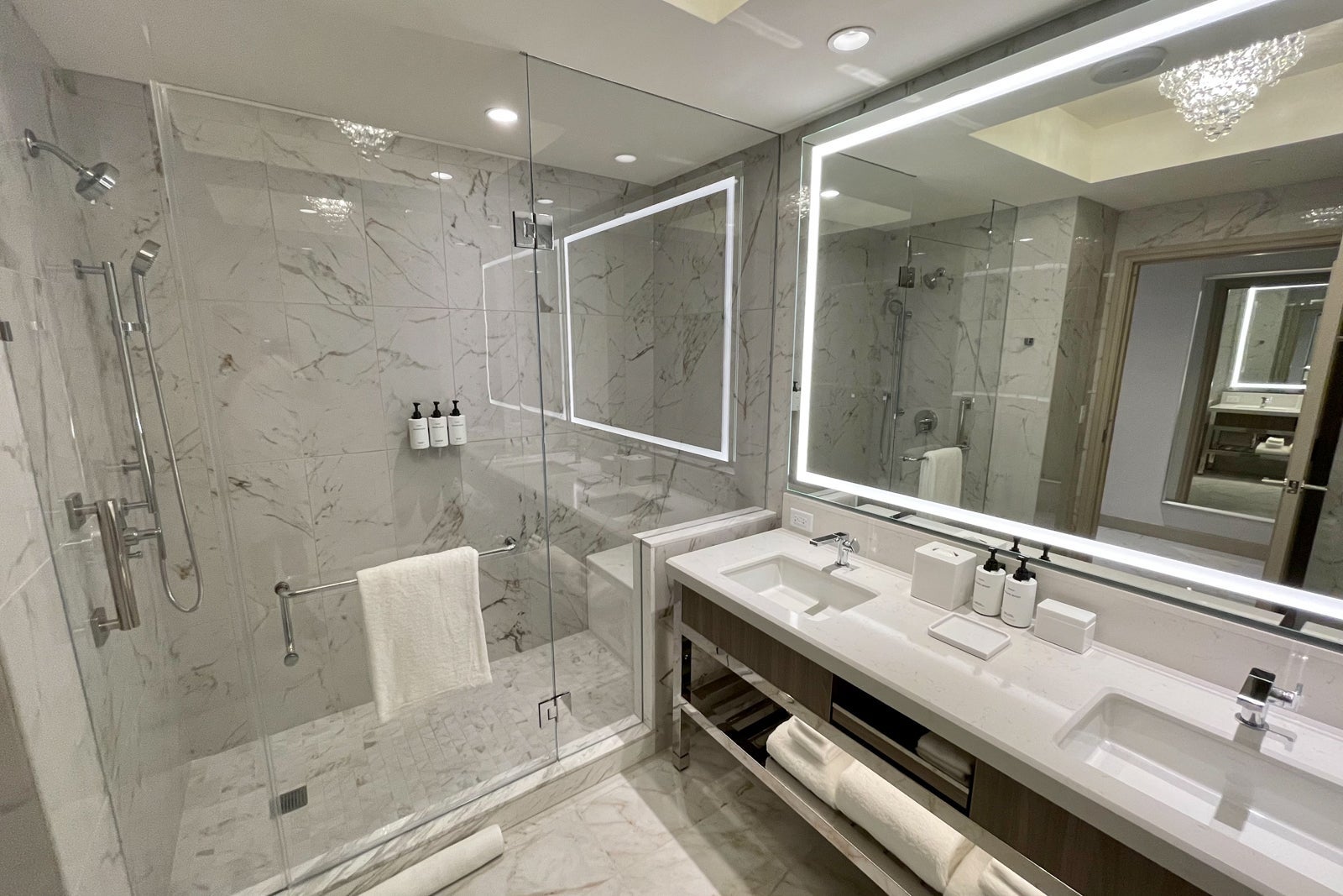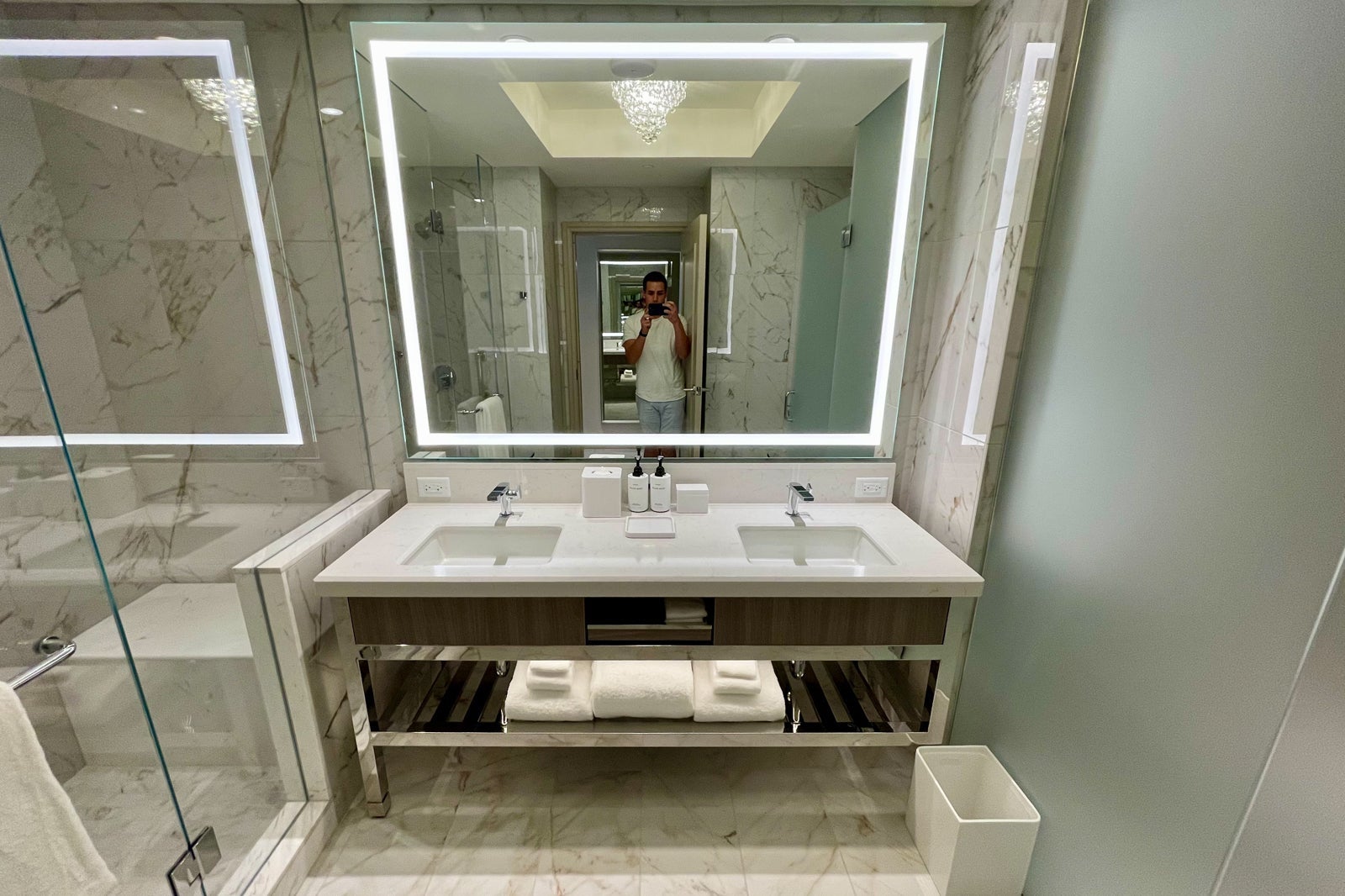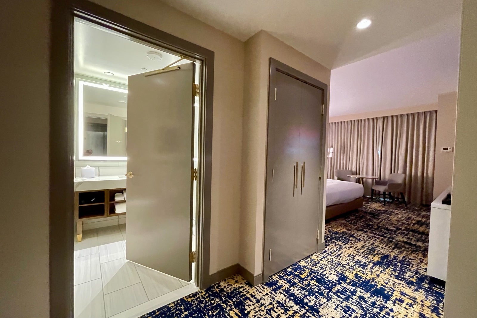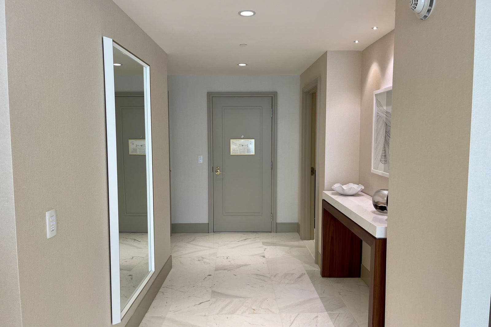 We also checked out an entry-level one-bedroom suite that felt quite similar to the suite at the Hilton, except it had an added walk-in dressing room, decked out with four closets and a 180-degree mirror.