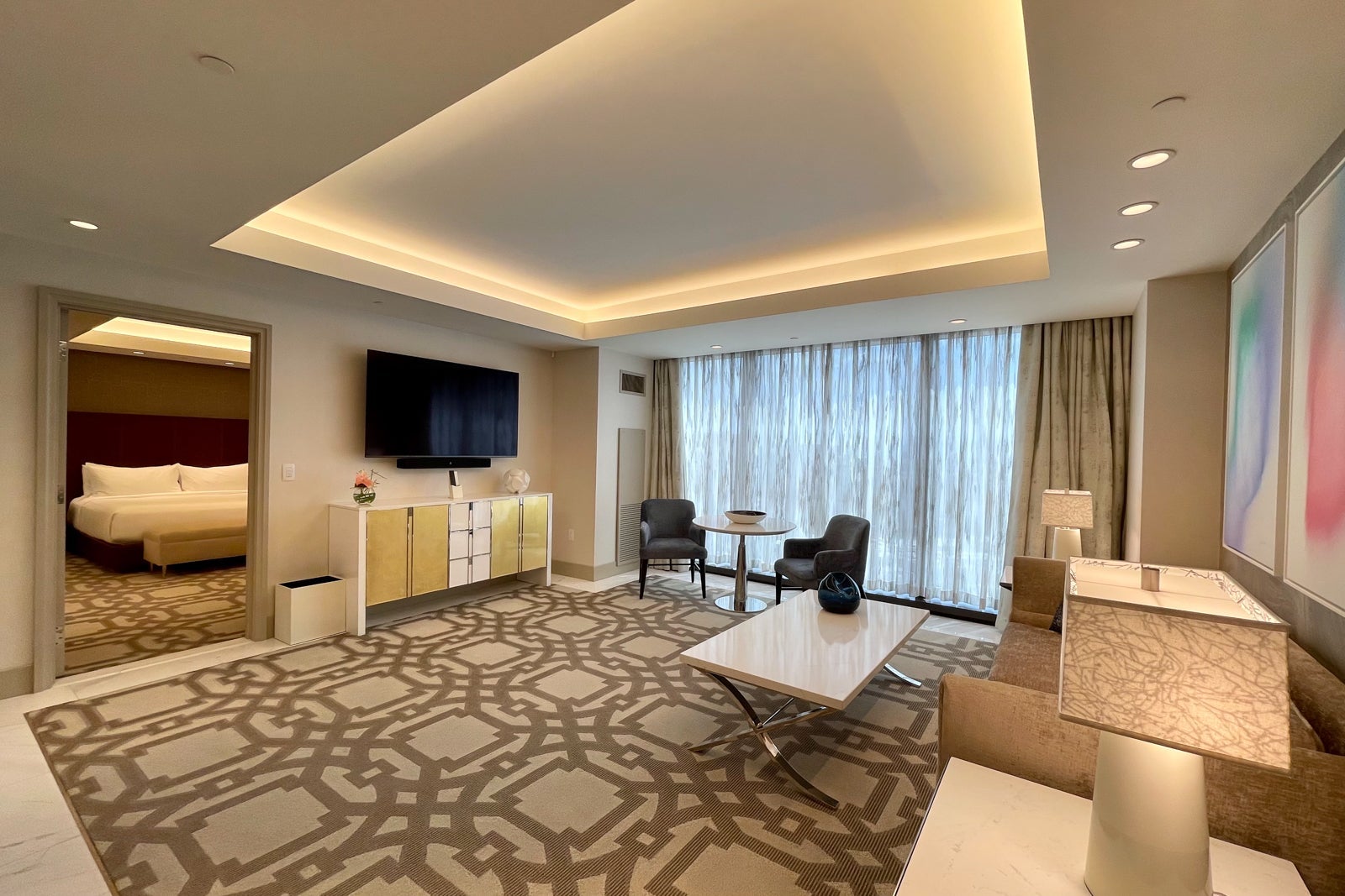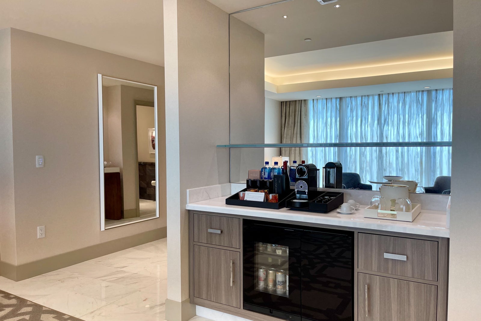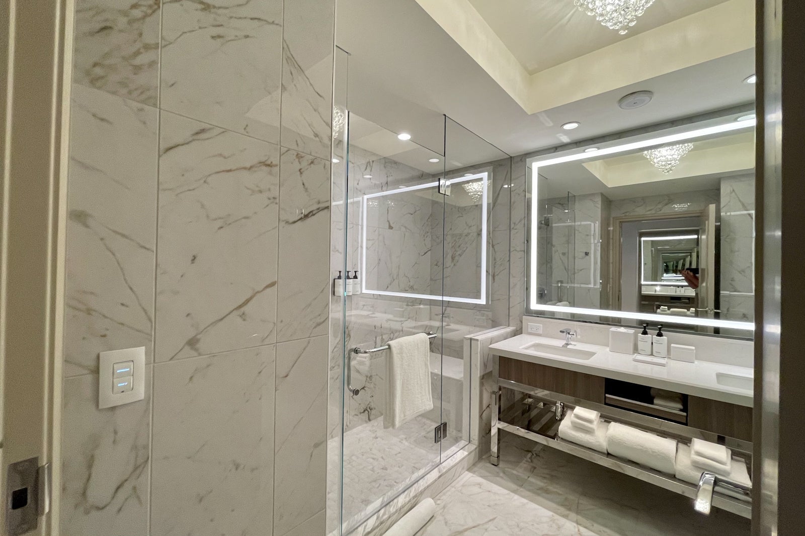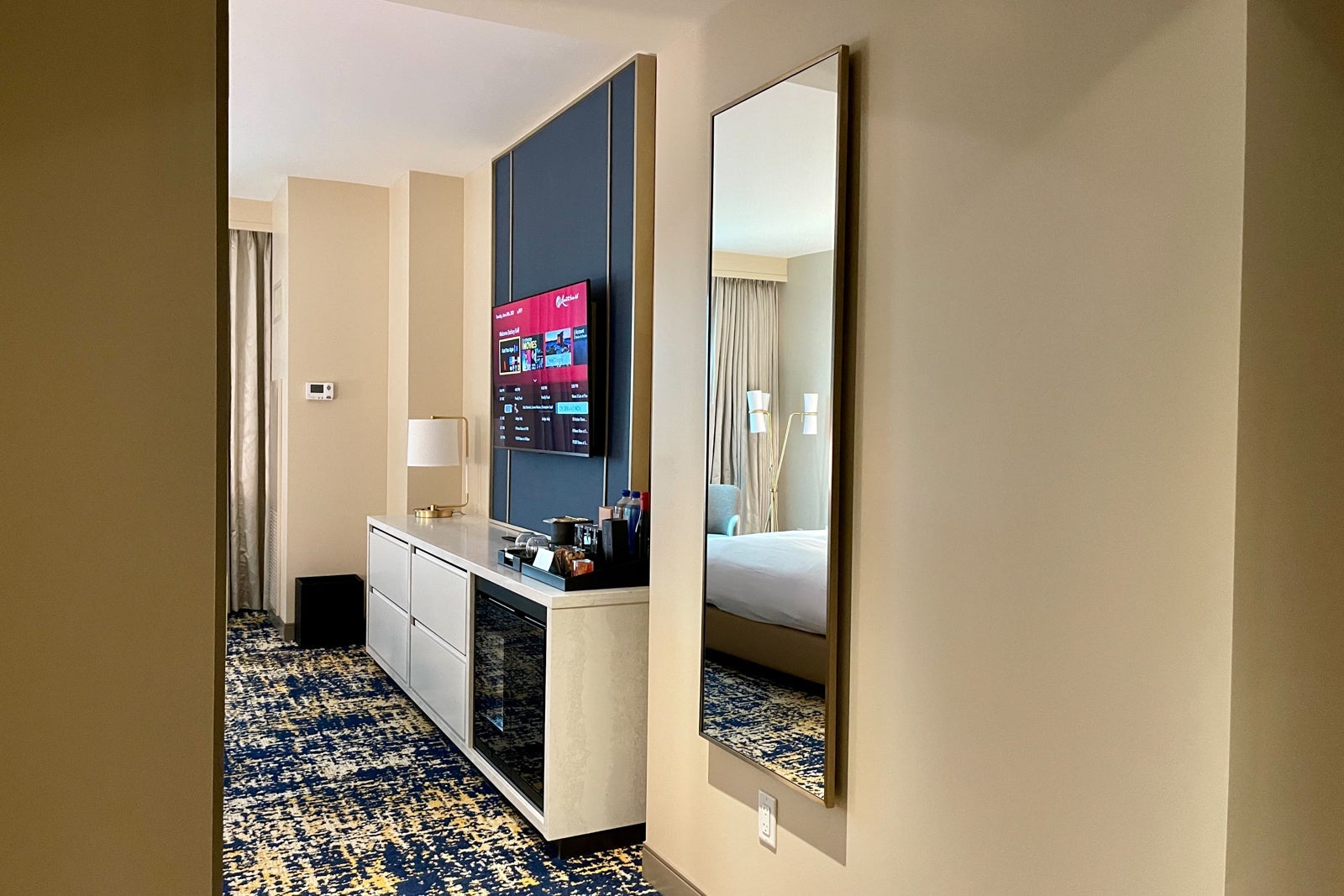 We also checked out an entry-level one-bedroom suite that felt quite similar to the suite at the Hilton, except it had an added walk-in dressing room, decked out with four closets and a 180-degree mirror.