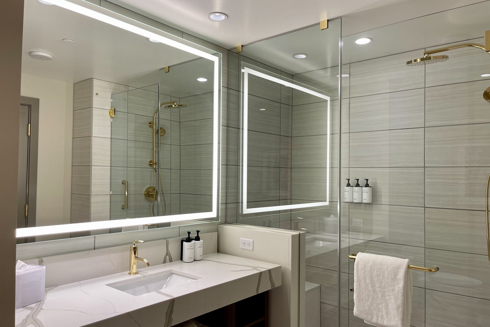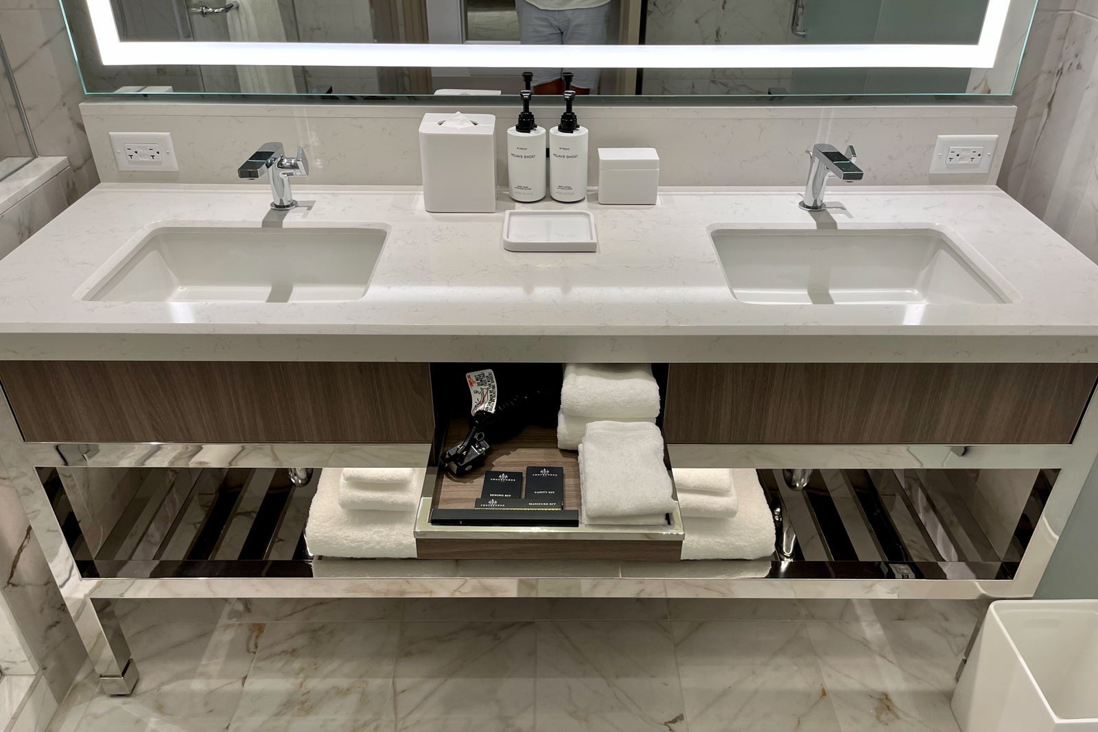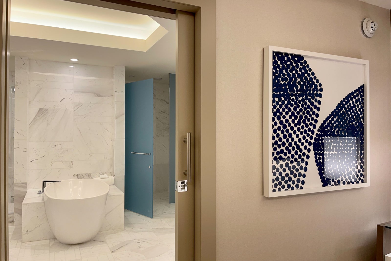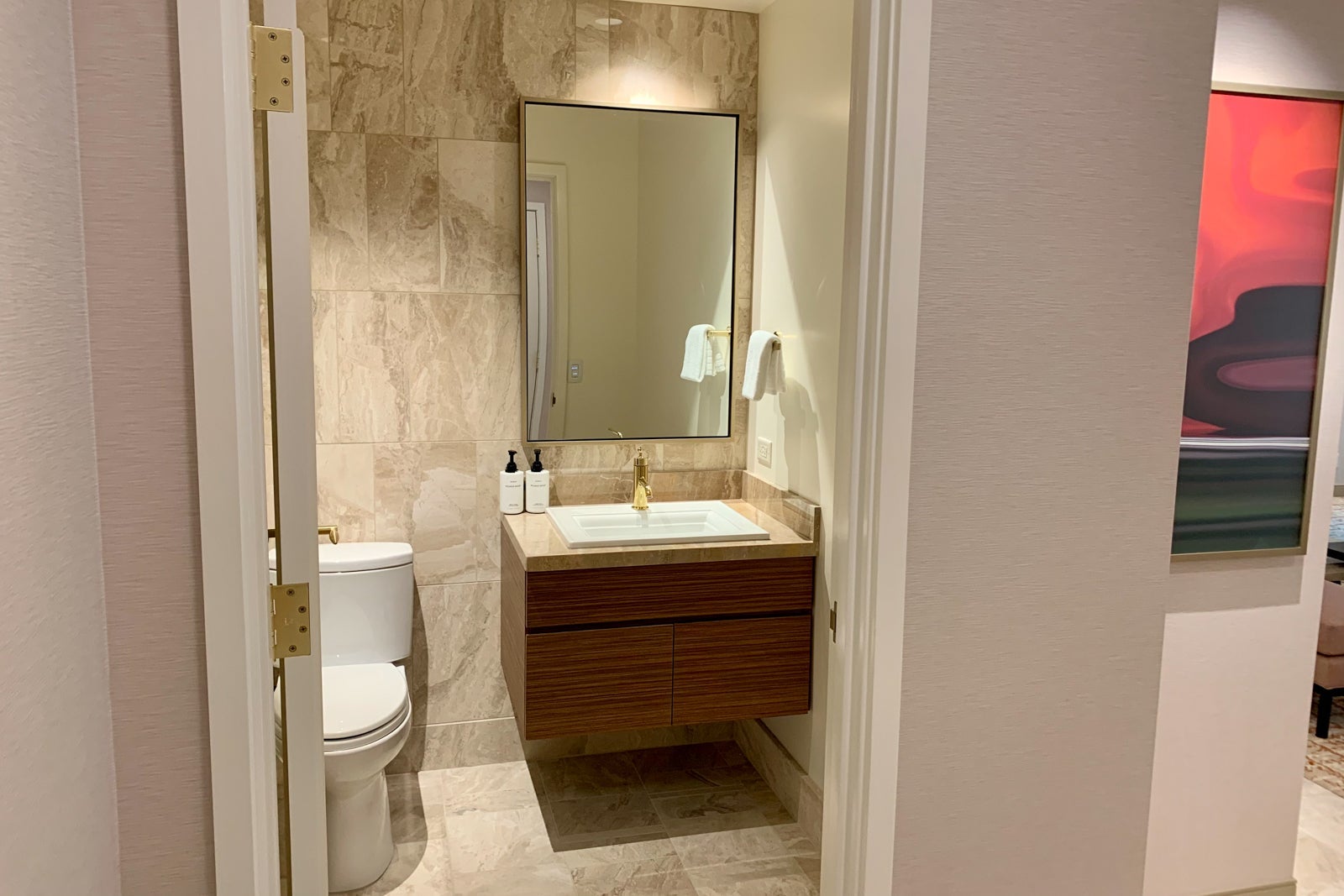 We also checked out an entry-level one-bedroom suite that felt quite similar to the suite at the Hilton, except it had an added walk-in dressing room, decked out with four closets and a 180-degree mirror.