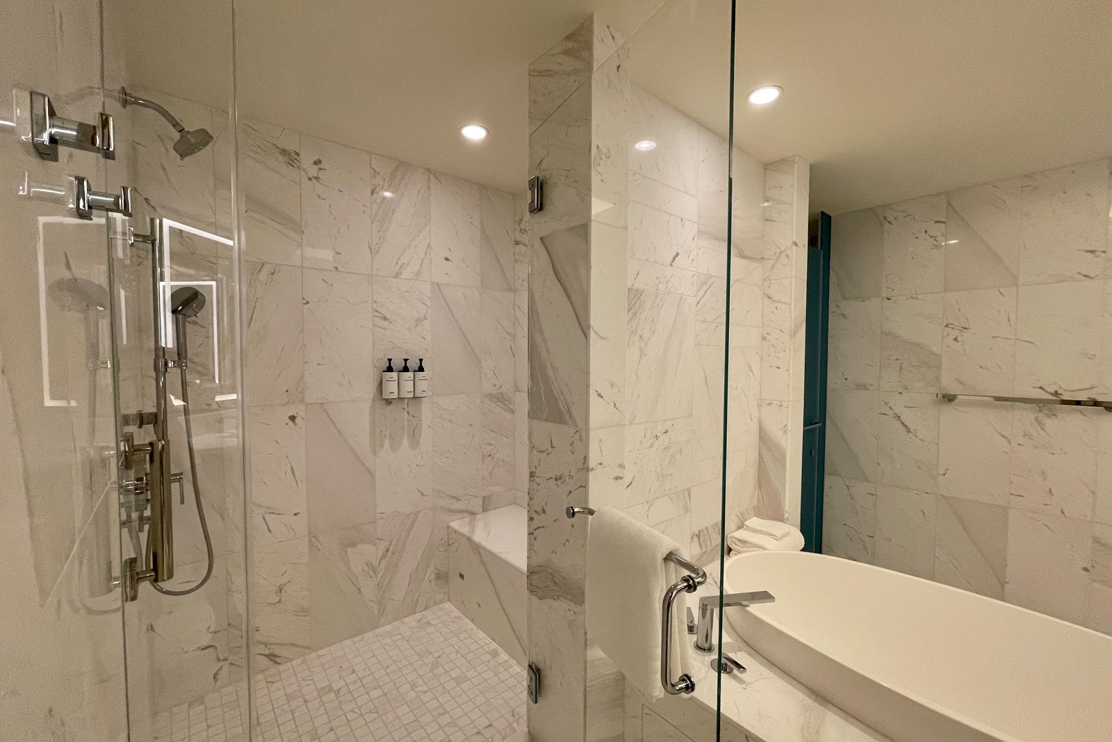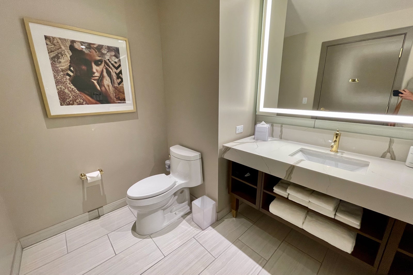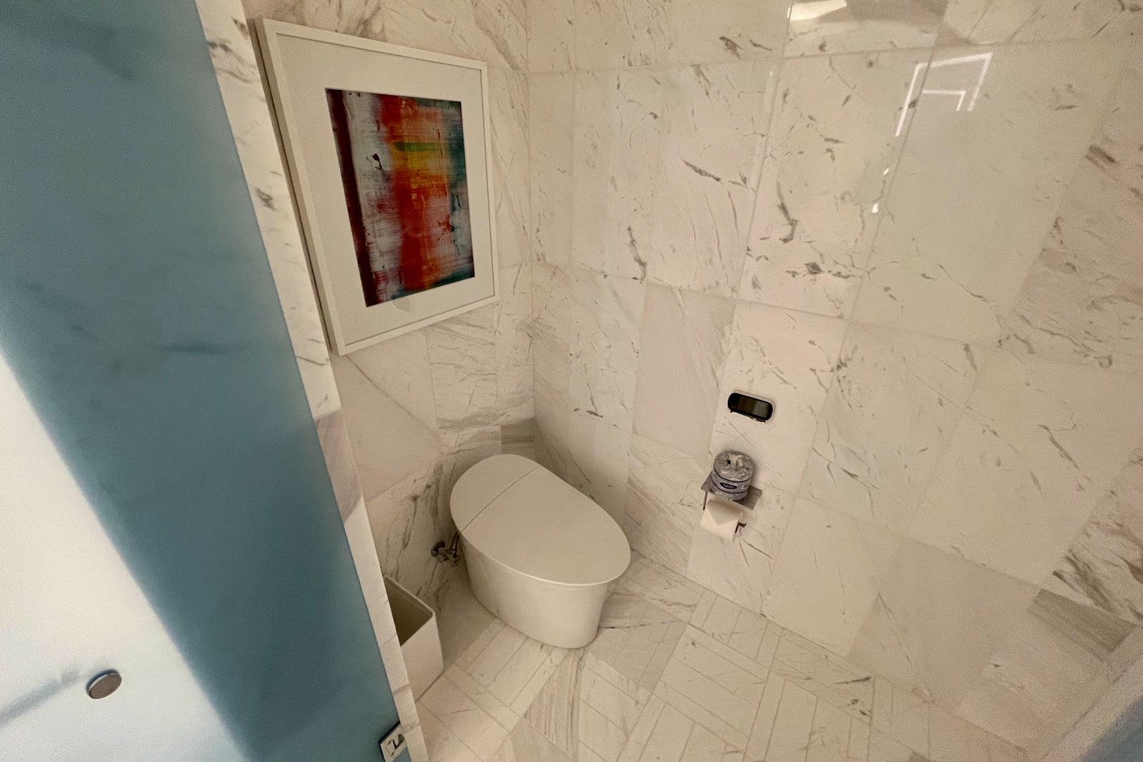 The bathroom had a rainfall shower, private toilet, giant soaking tub and double vanity. With more than 40 food outlets in the complex, it was refreshing to see that the bathroom did not include a scale.